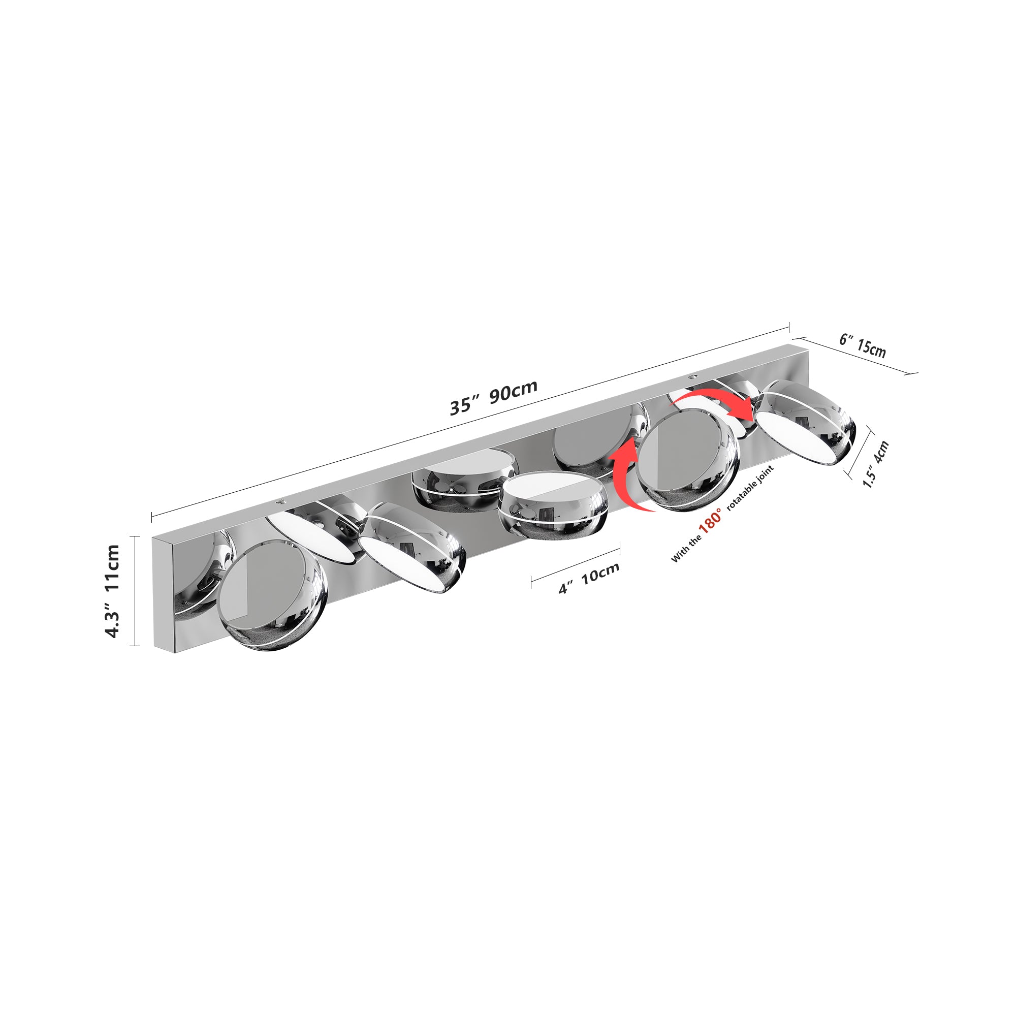 - Number of Lights: 5 light sources for balanced coverage across the mirror.