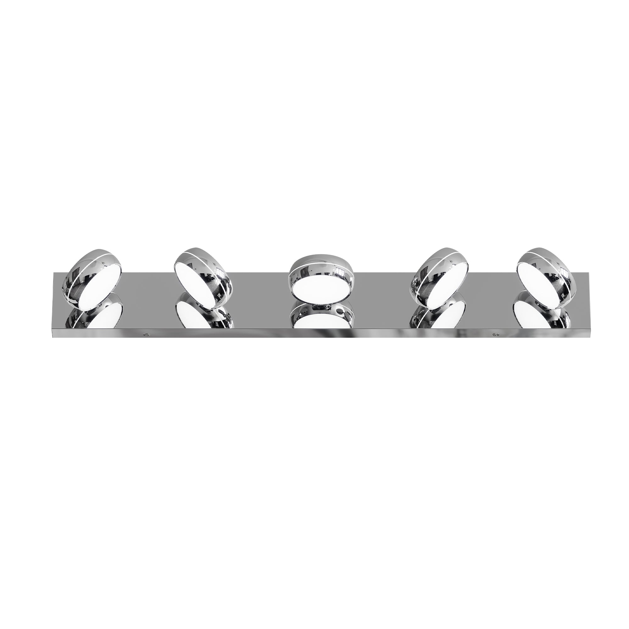 Brighten your bathroom with sleek, modern style and high-efficiency illumination. This 5-light LED vanity fixture delivers even, flattering light for grooming and makeup, while its chrome finish and low-profile design complement contemporary interiors. Designed for indoor use and easy semi-flush installation, it combines energy-saving LED performance with touch dimming for customizable ambiance.