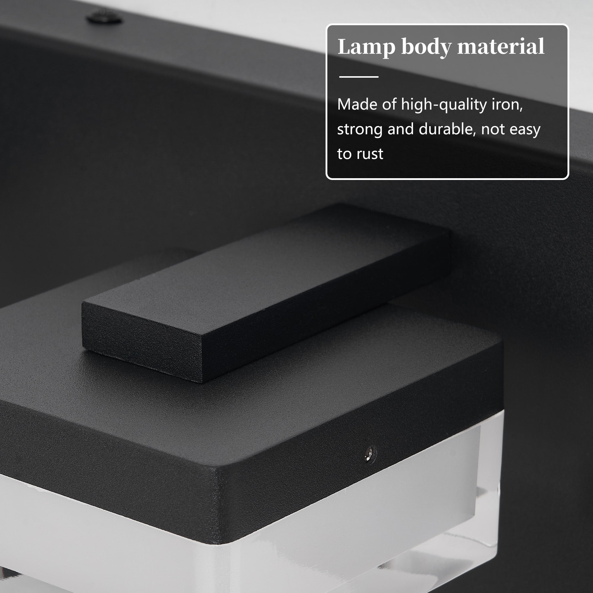 - Finish & materials: Matte black stainless-steel body with transparent acrylic shades for a modern, durable look