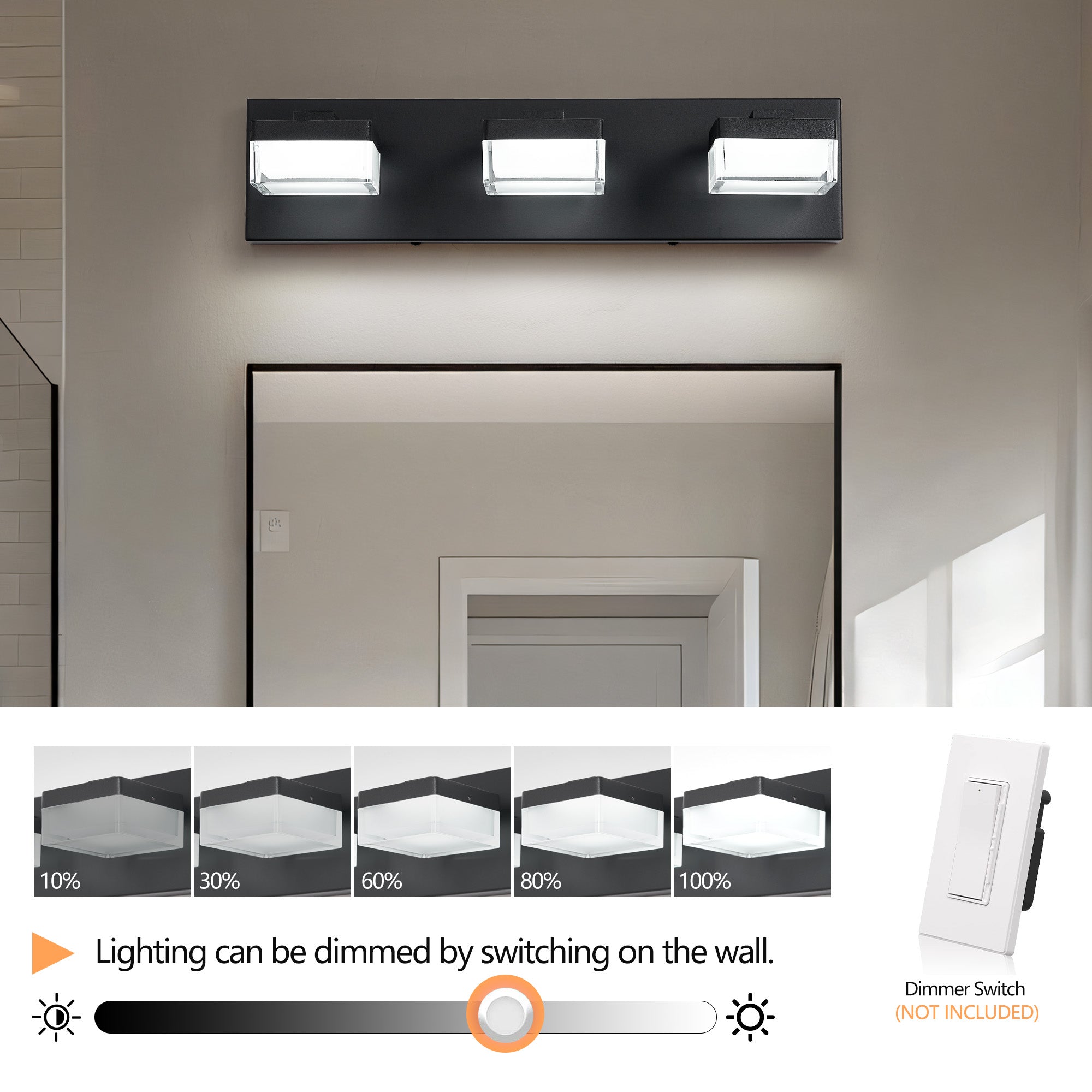 - Installation: Wall-mounted vanity fixture ideal for over-mirror placement; professional installation recommended if unsure about wiring
