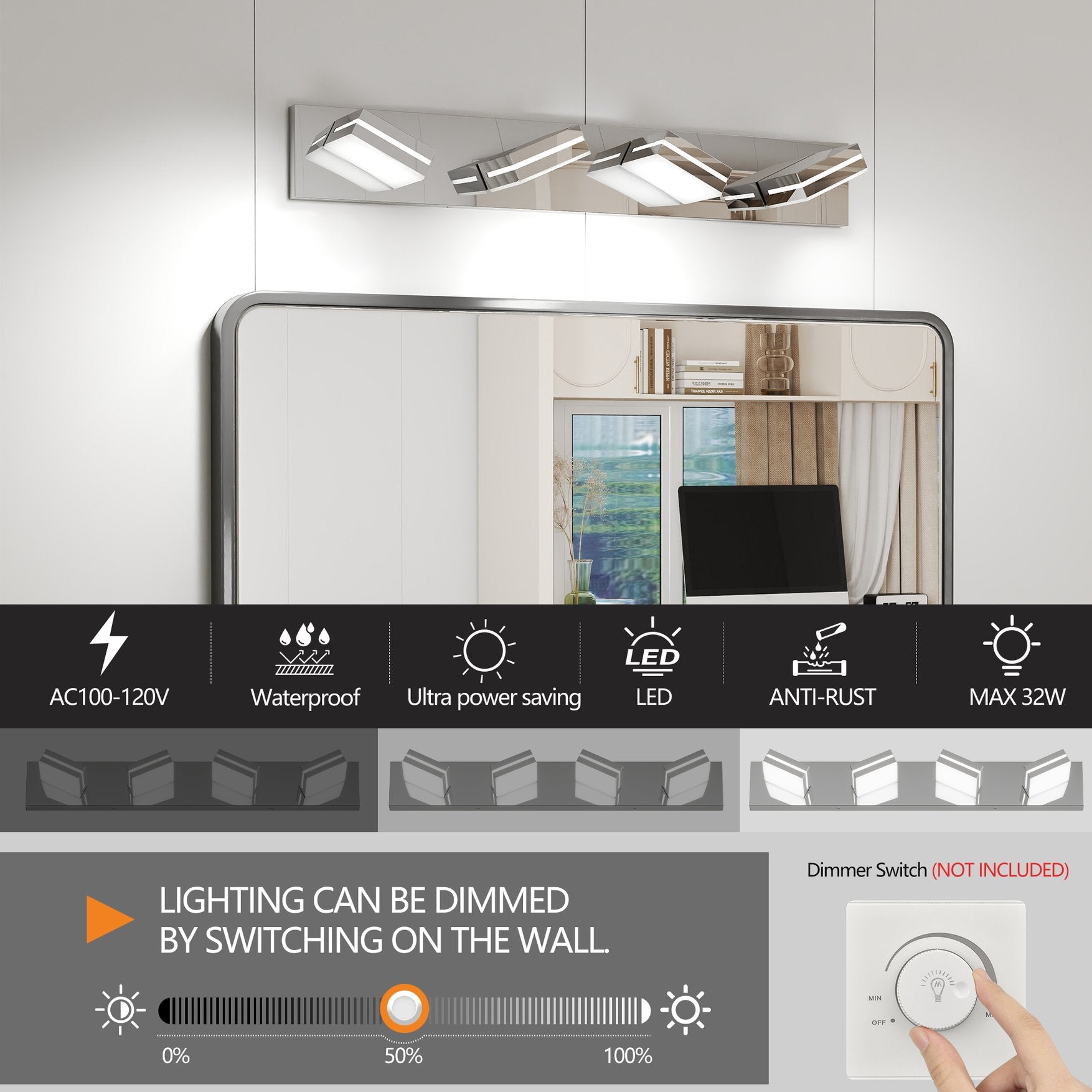 Add a touch of contemporary elegance to your bathroom or vanity area with this sleek 4-light chrome LED wall sconce. Designed for uniform, soft illumination that flatters skin tones and reduces shadows, it blends minimalist style with practical performance—ideal for makeup mirrors, powder rooms, or hallways. Built from durable, rust-resistant metal and equipped with energy-efficient LEDs, this fixture delivers long-lasting, low-maintenance lighting and a bright, modern aesthetic.