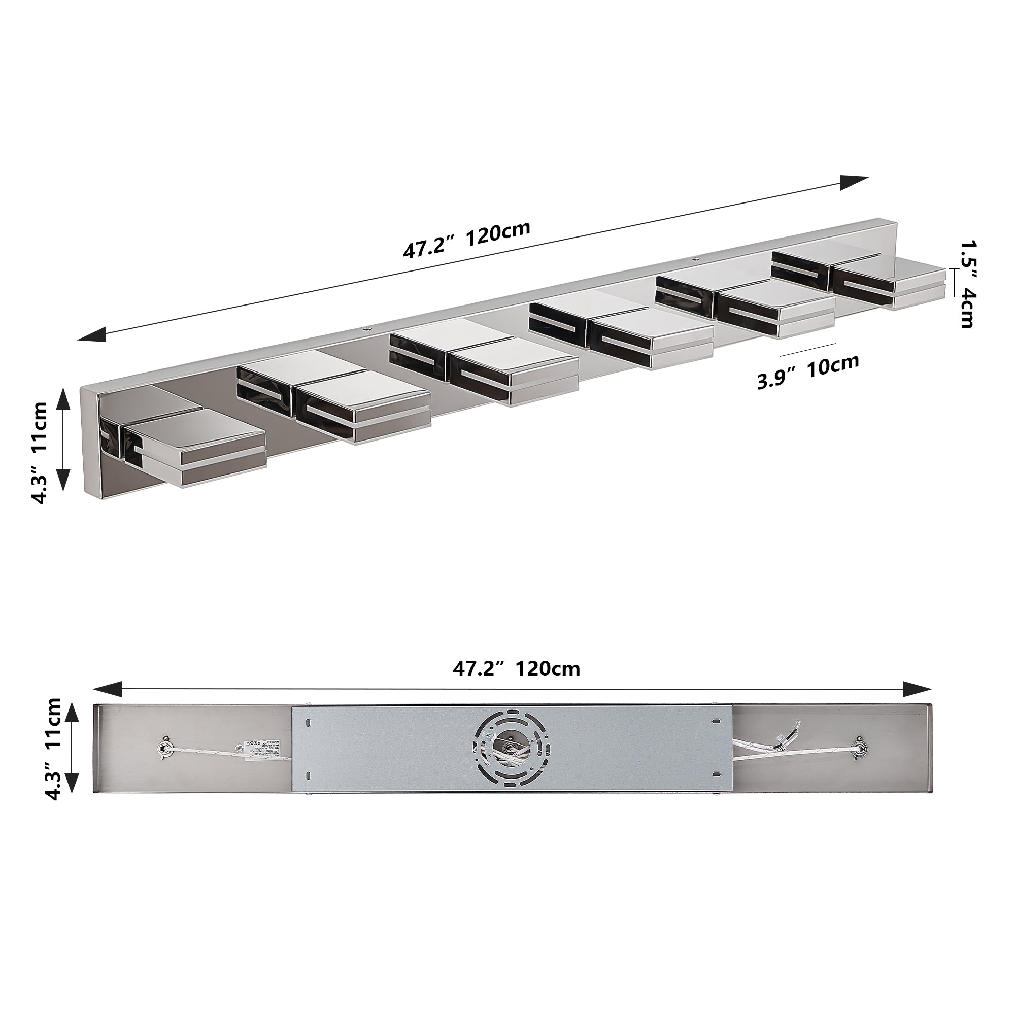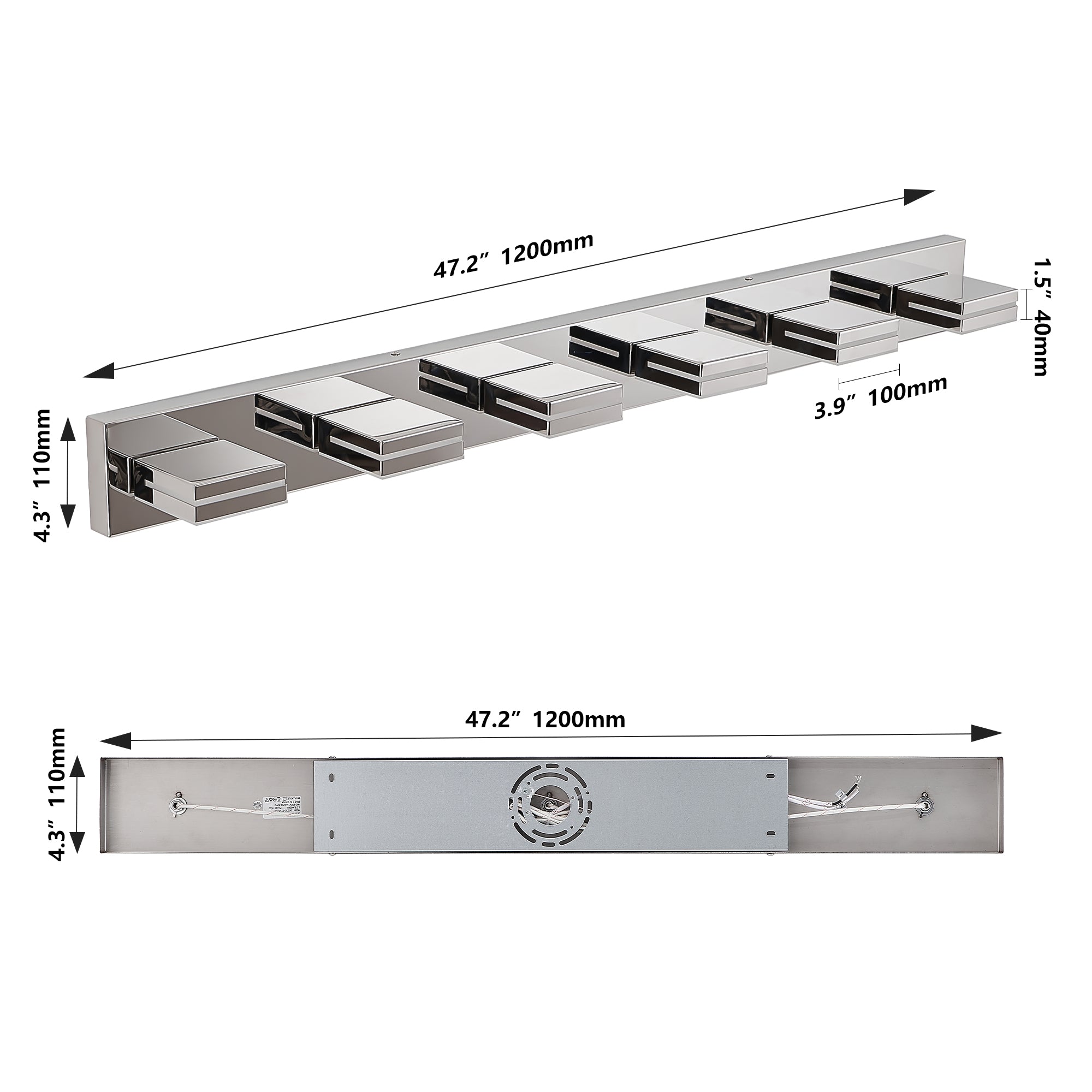 - Dimensions: 48.82 L x 7.09 W x 5.51 H (inches) — full fixture size for planning placement and ensuring proper fit above mirrors or vanities.