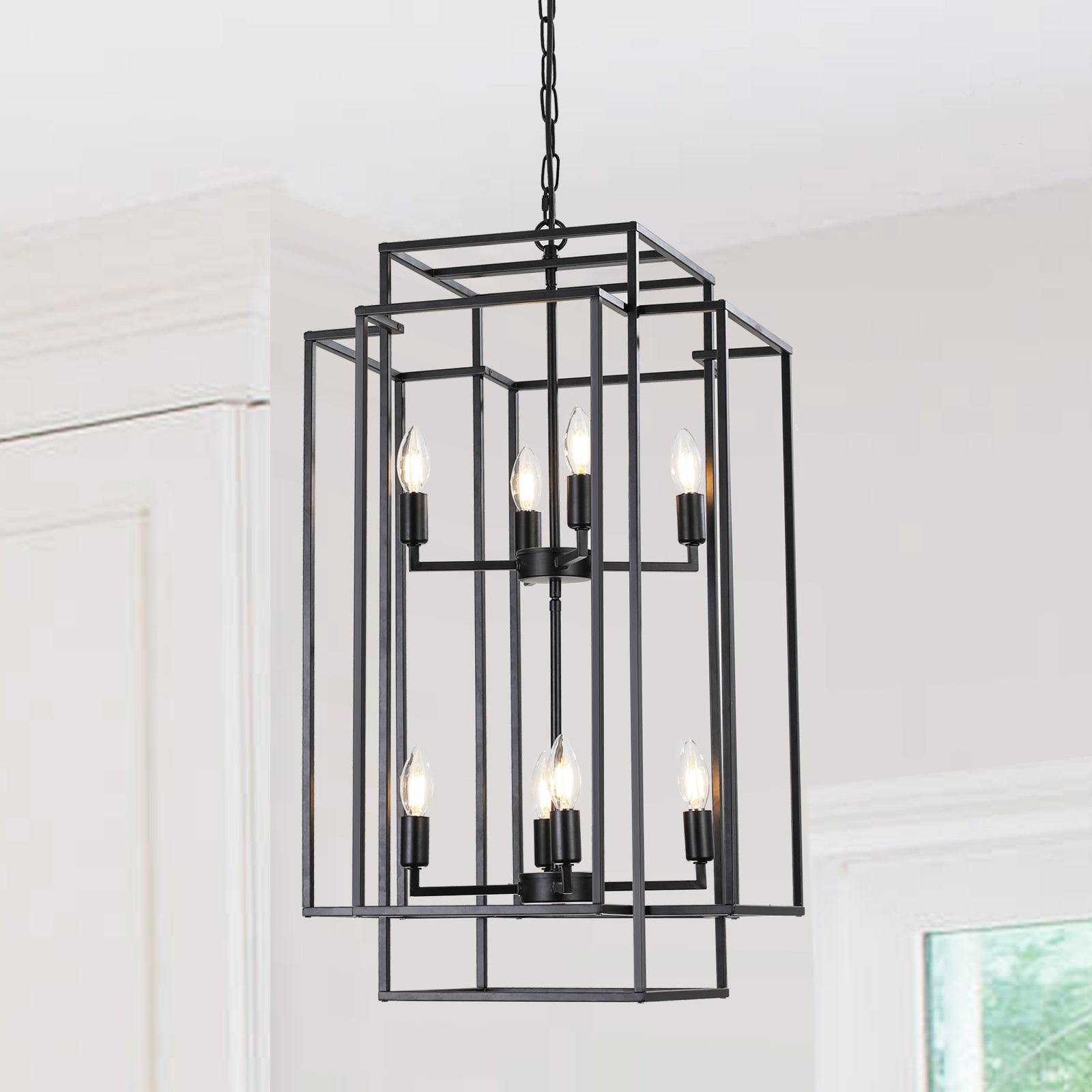 Elevate your space with a sleek, industrial-inspired pendant chandelier that blends modern geometry and functional versatility. The 8-light black metal frame creates a bold focal point while maintaining clean lines, making it ideal for living rooms, dining areas, kitchens, foyers, and high-ceiling entryways. Designed for easy installation and customizable hanging height, this fixture offers contemporary style without overpowering your room.