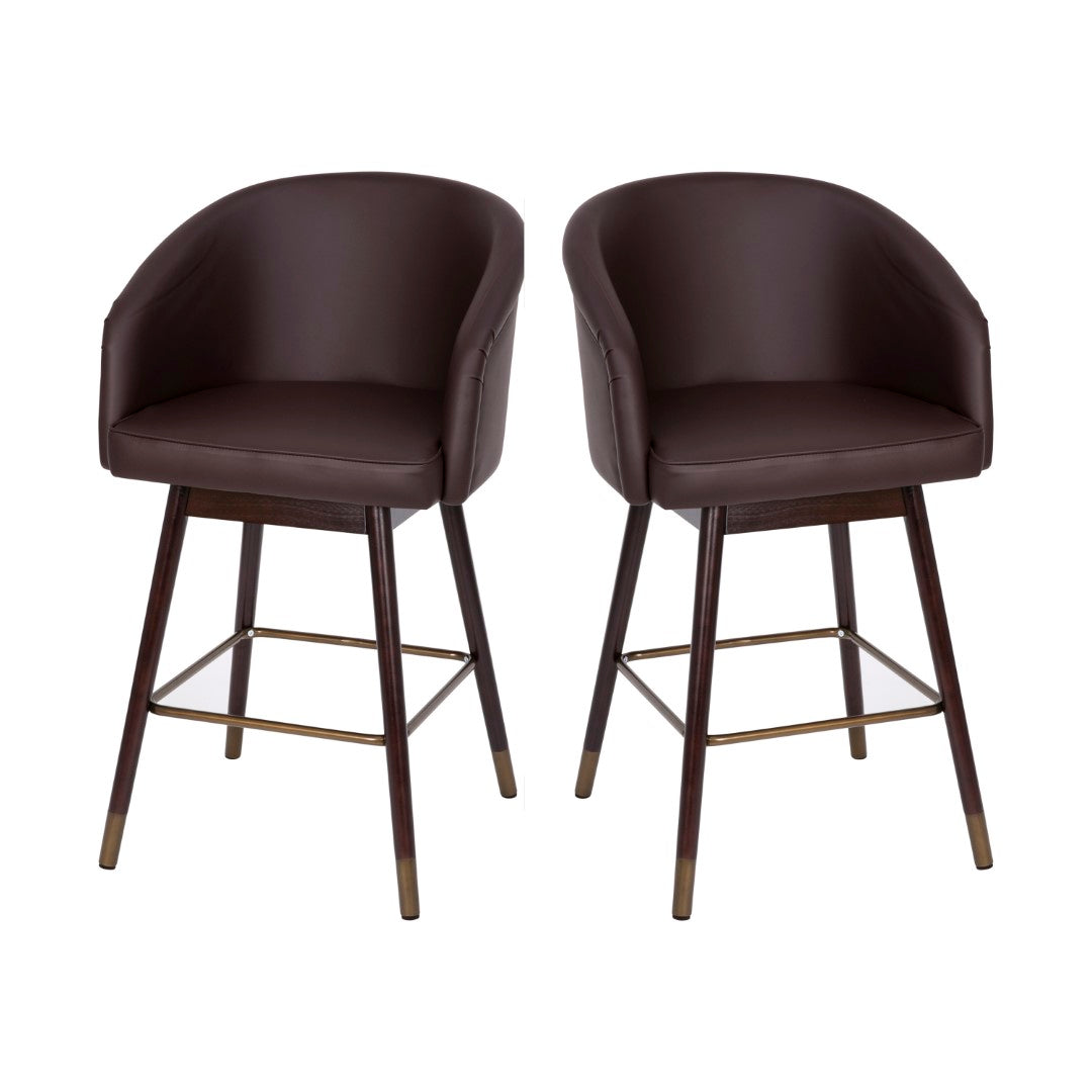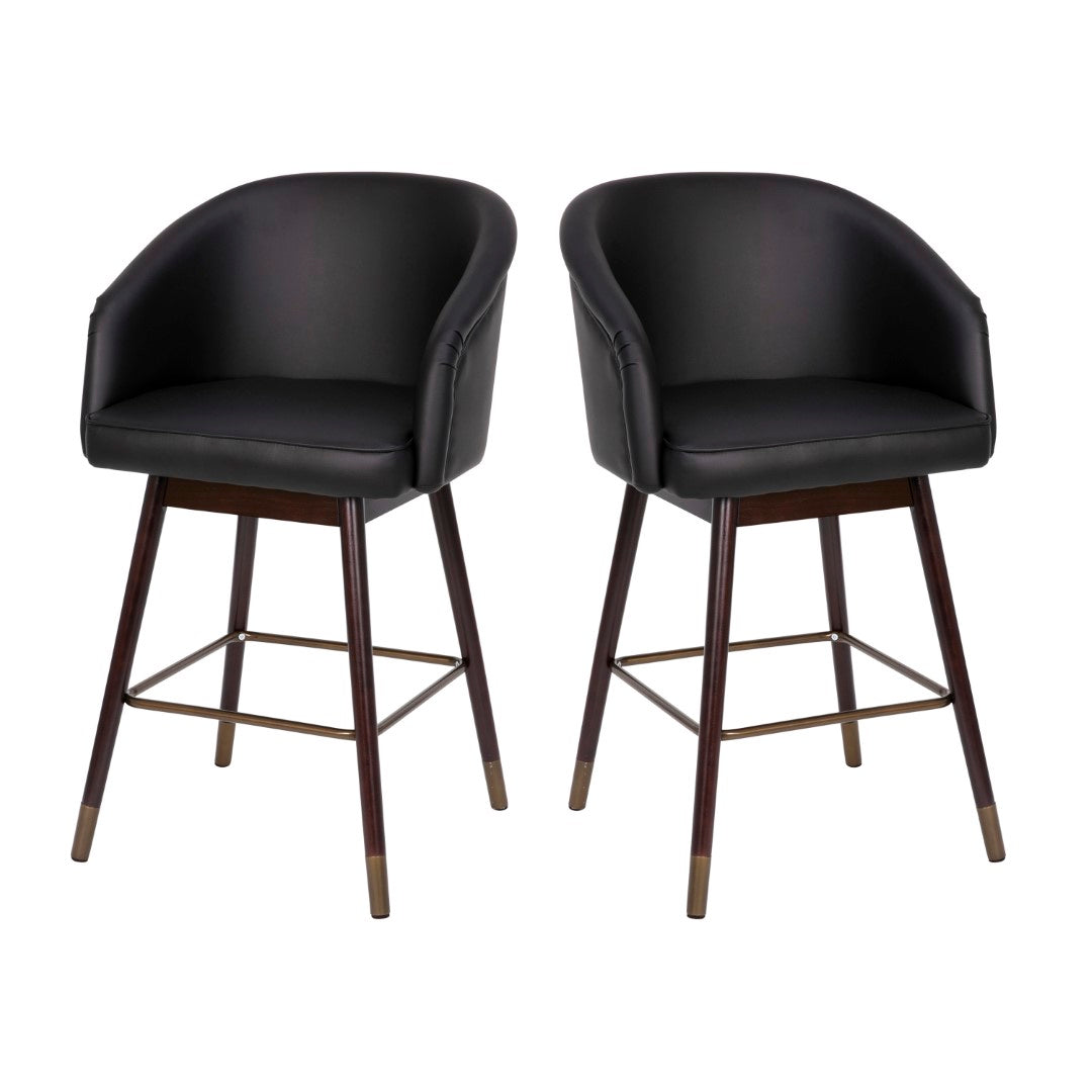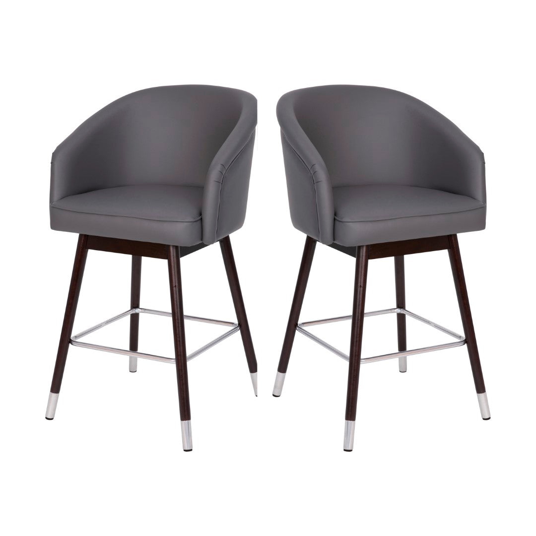 - Set of 2 Modern 26 Mid-Back Commercial Counter Stools with Integrated Arms and Contoured Backrest