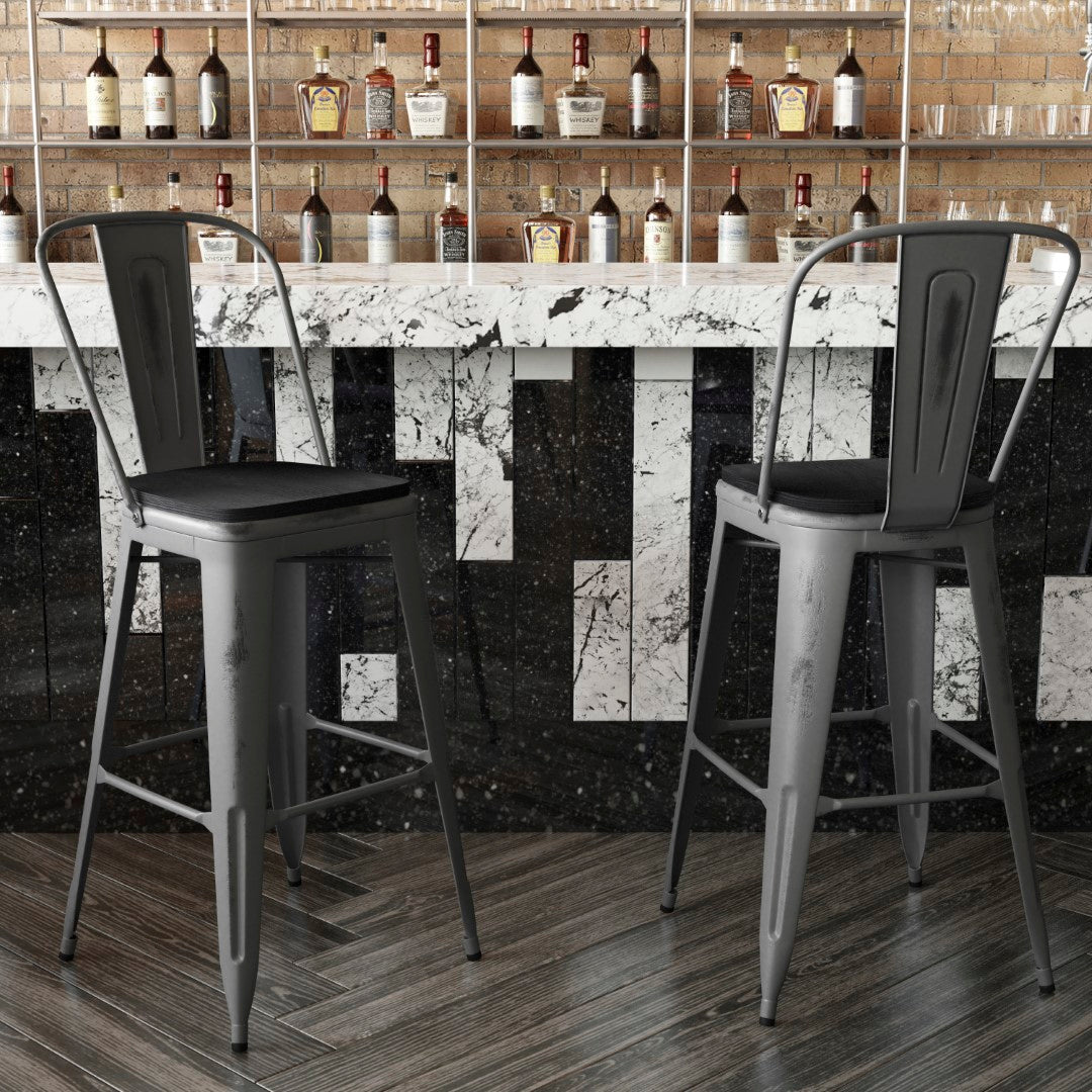 - Modern Metal Bar Stool with Colorful Poly Resin Seat for Commercial or Residential Use