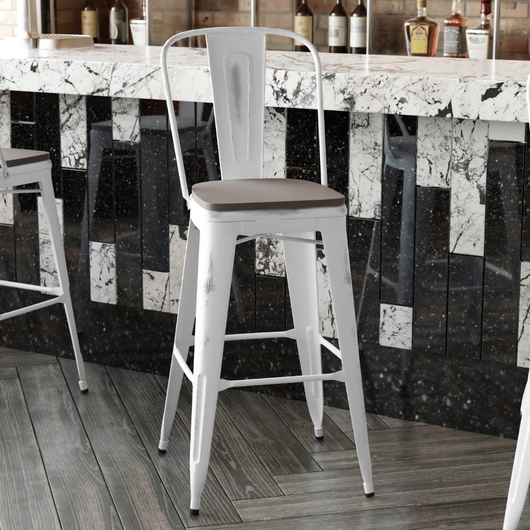 - Modern colorful bar stool with poly resin seat ideal for commercial or residential use