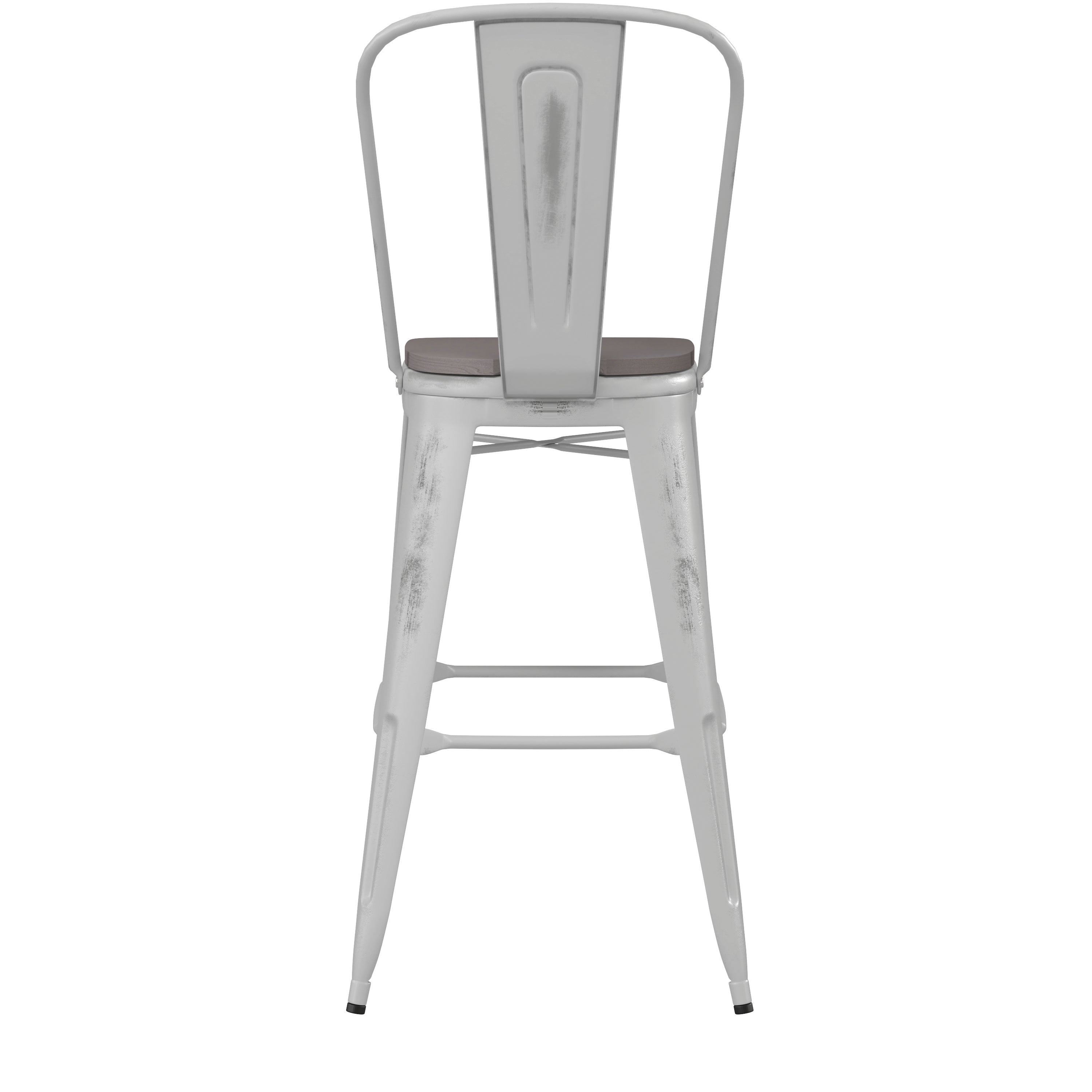 - Distressed white steel frame for a contemporary look