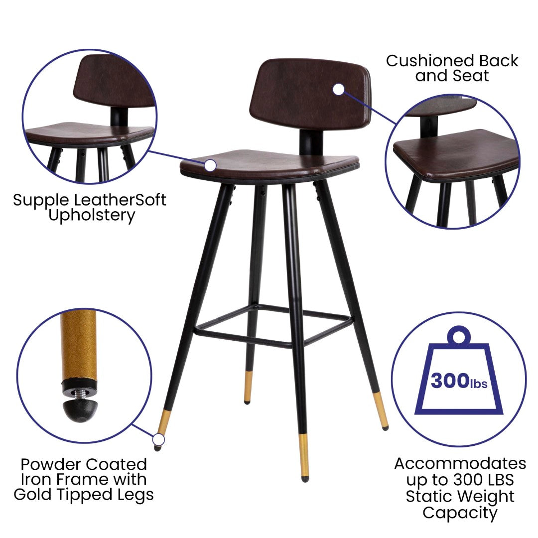 - Set of 2 Modern Mid-Back Barstools with Gold Tipped Legs - Commercial Grade