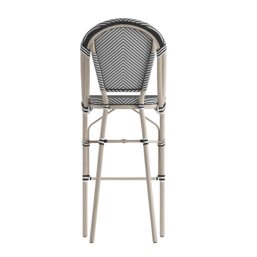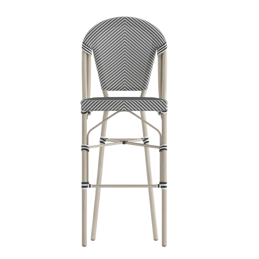Bring timeless Parisian café charm to your venue with a rugged, commercial-grade bistro barstool designed for both indoor and outdoor use. Combining a breathable textilene seat and back with a rust-resistant metal frame finished in a bamboo look, this 30" high stool delivers comfort, durability, and easy maintenance — ideal for restaurants, hotels, patios, and high-turnover environments.