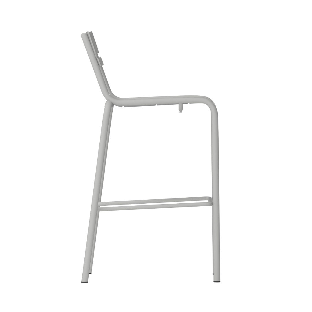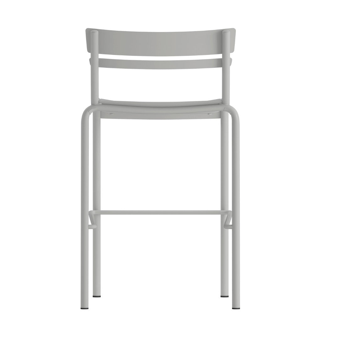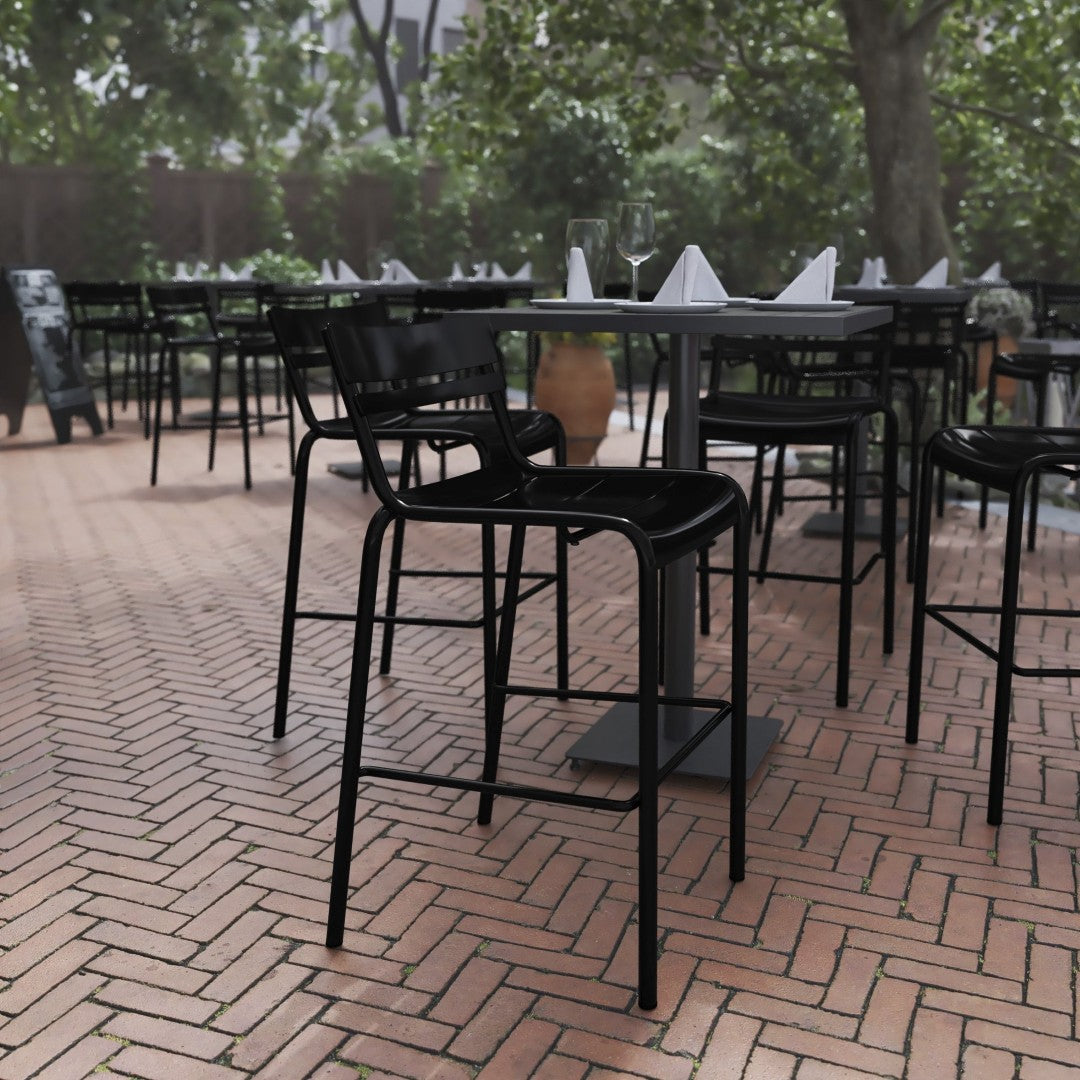 Bring contemporary durability and effortless maintenance to your dining or hospitality space with this commercial-grade metal bar stool. Its sleek slatted design promotes airflow and rapid drainage for outdoor use, while a powder-coated finish ensures long-lasting performance in demanding environments — from busy restaurants and bars to kitchens and patios. Lightweight and stackable, it ships fully assembled so you can put it into service immediately.