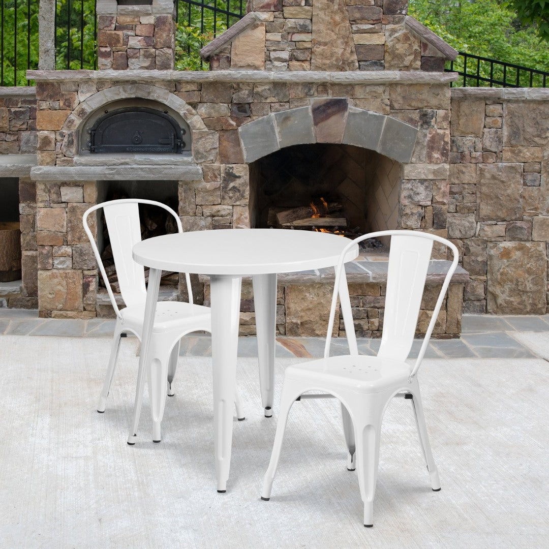 Add a sleek, versatile touch to your home, café, or patio with this commercial-grade 3-piece bistro set. Clean lines, durable construction, and a retro-modern silhouette make it a stylish choice for both indoor and outdoor dining. The set is built for frequent use in residential and commercial settings and stacks for compact storage when not in use.