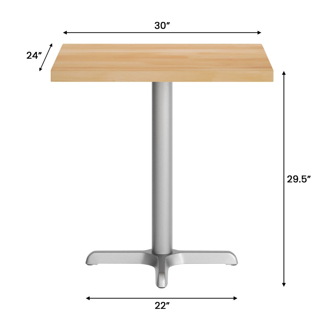- Dimensions: 24" W x 30" D tabletop; overall height 29.5" (Dining height). Base footprint: 22" x 22".