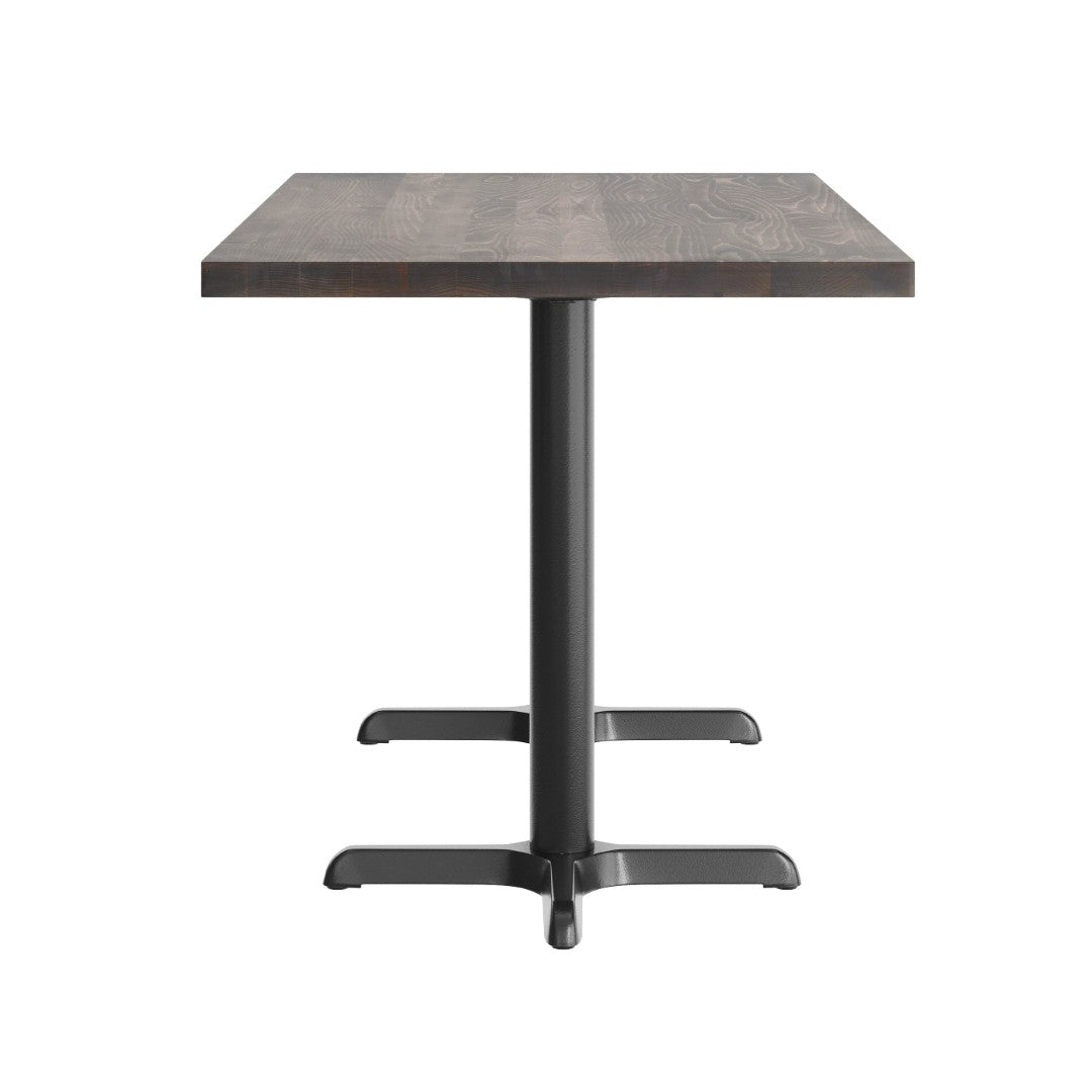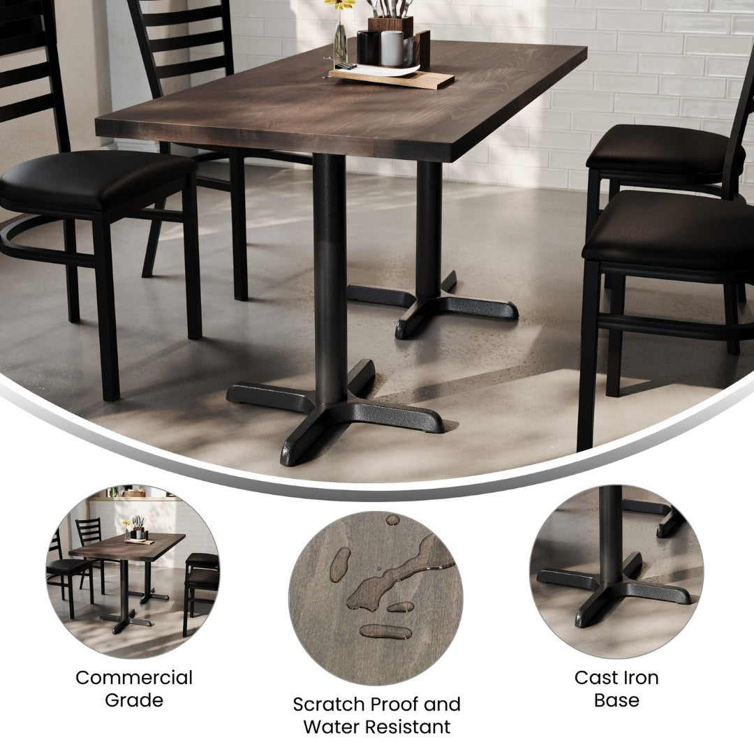 Bring durable, classic style to your dining space with a commercial-grade tabletop and cast iron X-base set designed for restaurants, cafés, and hospitality venues. The solid wood tabletop showcases a warm dark brown finish that highlights natural grain, while the rust-resistant black cast iron crisscross base provides industrial stability and decorative appeal. Built for heavy use, this set balances form and function for long-lasting performance and effortless daily maintenance.