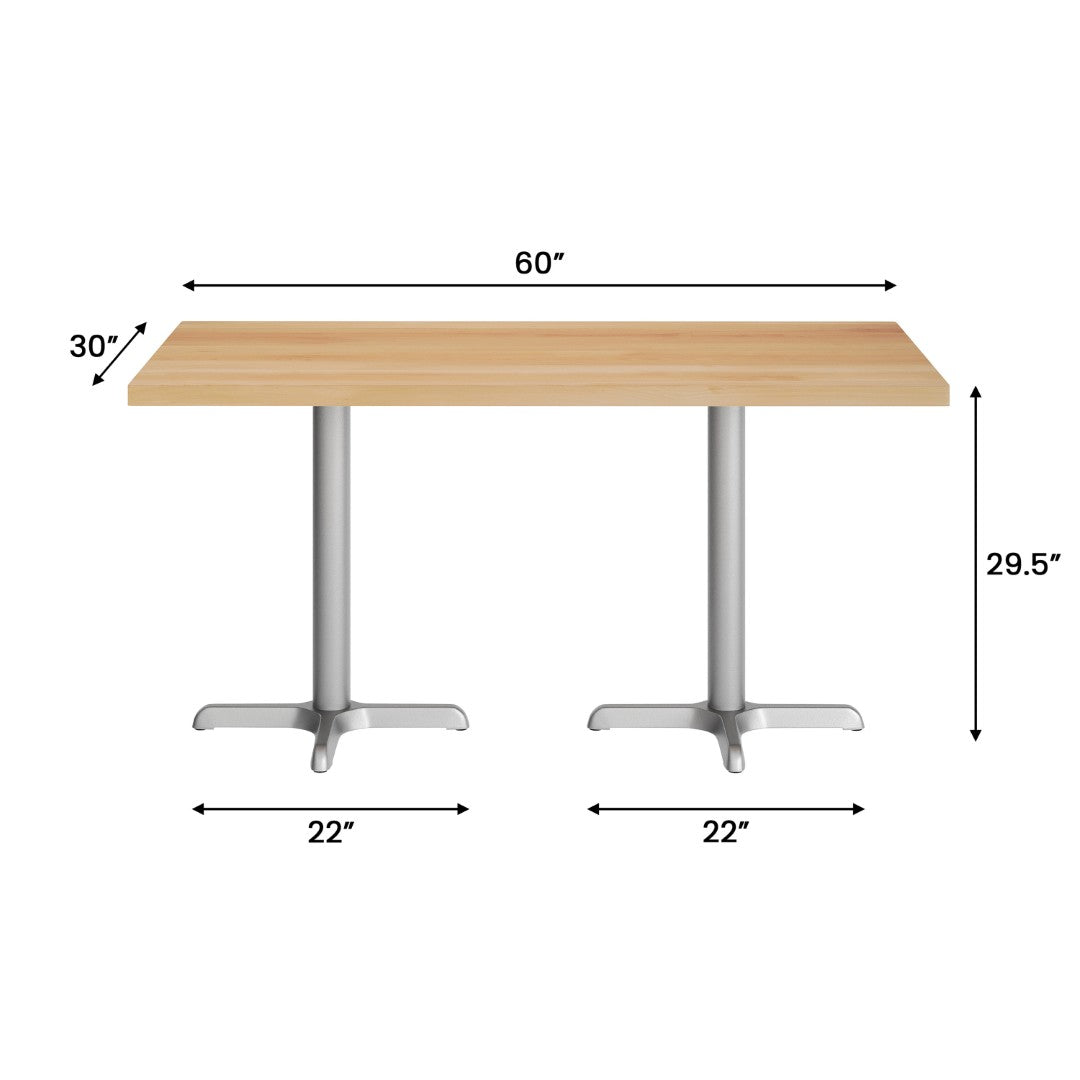 - Top construction: 1.5" thick solid beechwood tabletop in dark brown—commercial grade for durability and enhanced grain appearance.