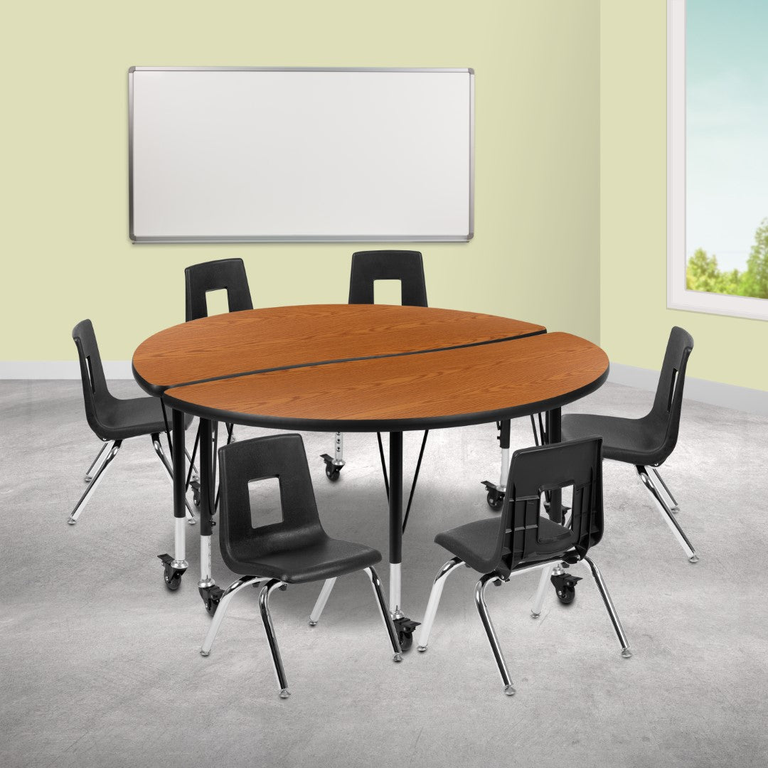 - 8 Piece Flexible Learning Wave Activity Table Set with Stack Chairs