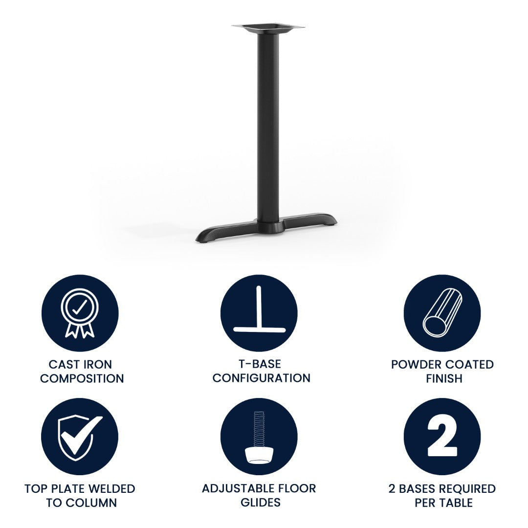 Give your restaurant, cafeteria, or break room a durable, professional foundation with this commercial-grade T-base designed for heavy daily use. Built from solid cast iron and finished in matte black powder coat, the base pairs seamlessly with rectangular tabletops to create stable, long-lasting dining surfaces that resist wear in busy hospitality environments.