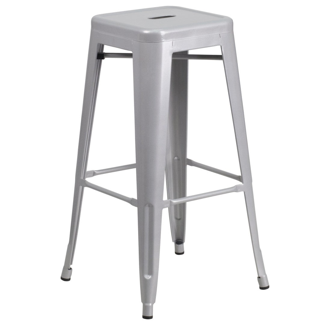 - Commercial-Grade Strength: Sturdy industrial design with cross braces under the table top and stools; each stool supports up to 500 lb.