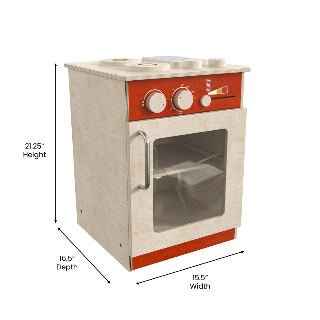 Inspire imaginative, cooperative play and teach early kitchen safety with this commercial-grade wooden children's stove. Built for classrooms and playrooms, it combines durable, child-safe construction with realistic details—turning everyday pretend play into opportunities for social, emotional, and nutritional learning. The vivid beech finish and interactive controls engage young chefs while integrated storage keeps play areas tidy and organized.