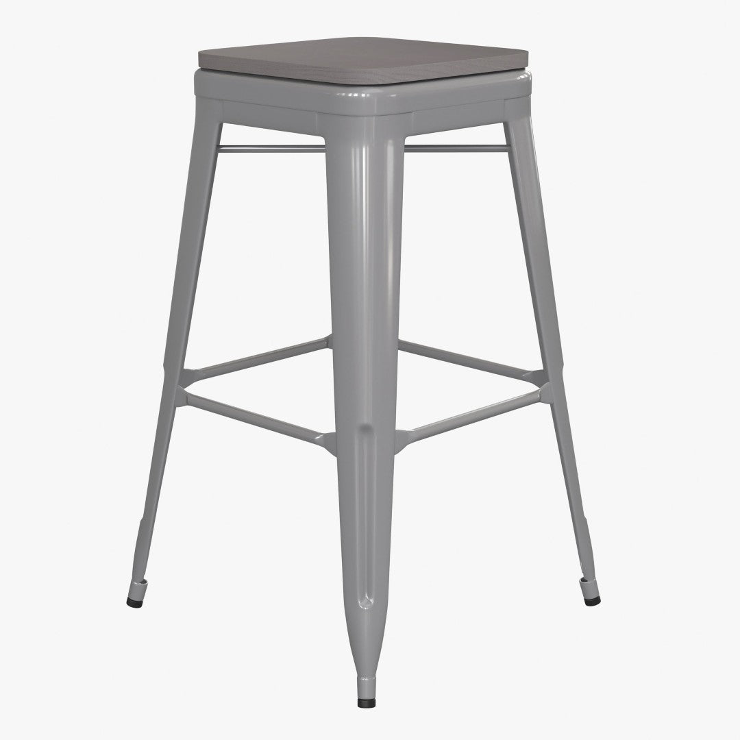 - Modern Industrial Metal Bar Stool with Poly Resin Seat, Set of 4
