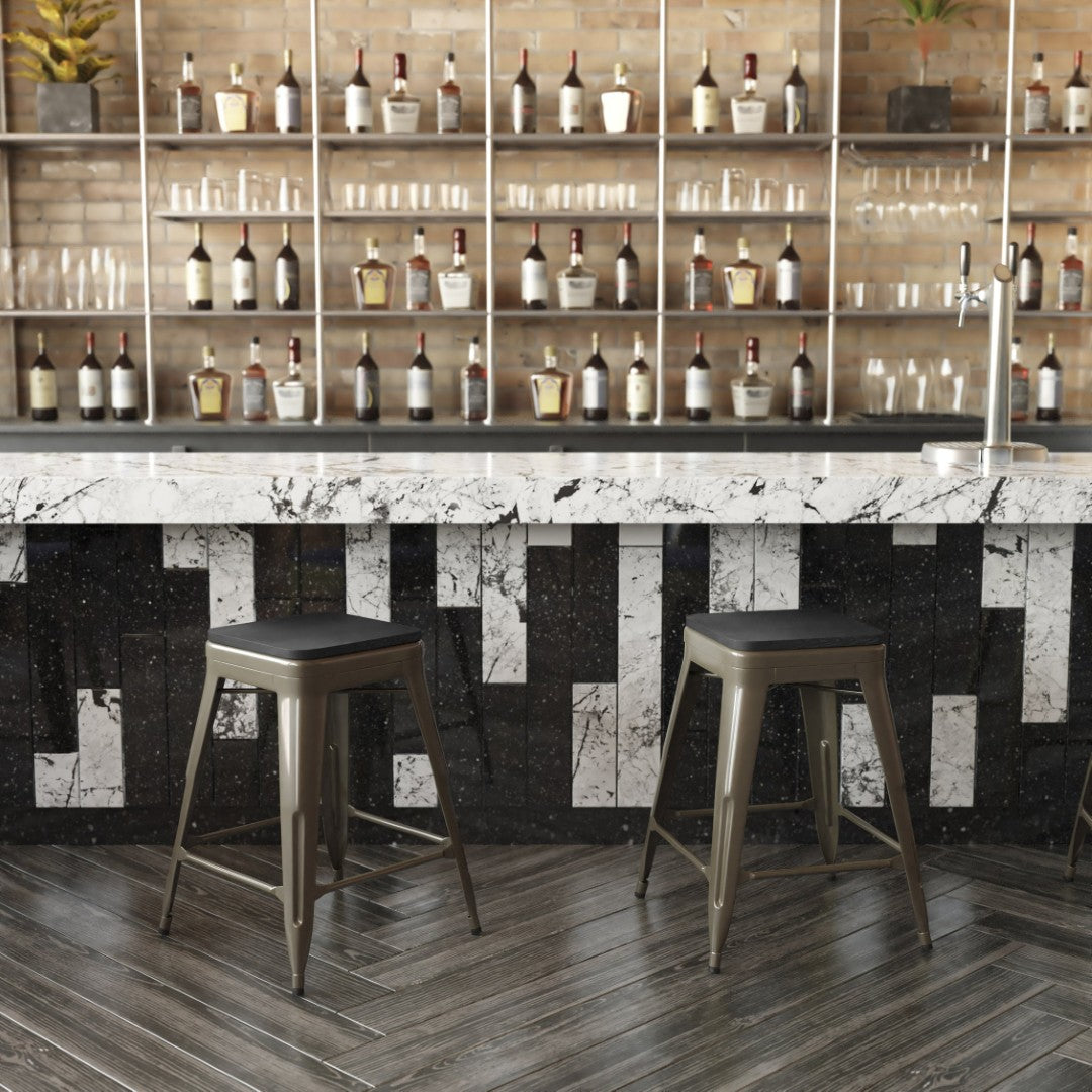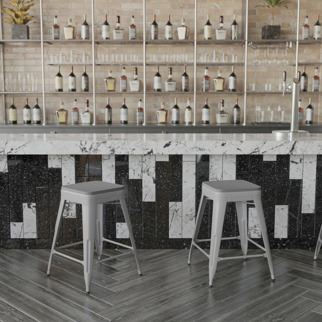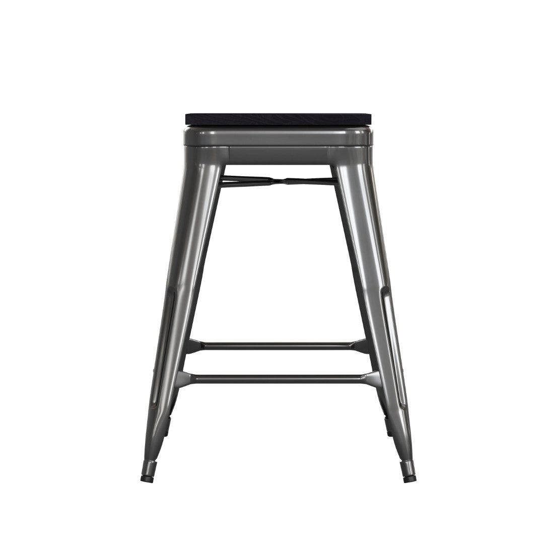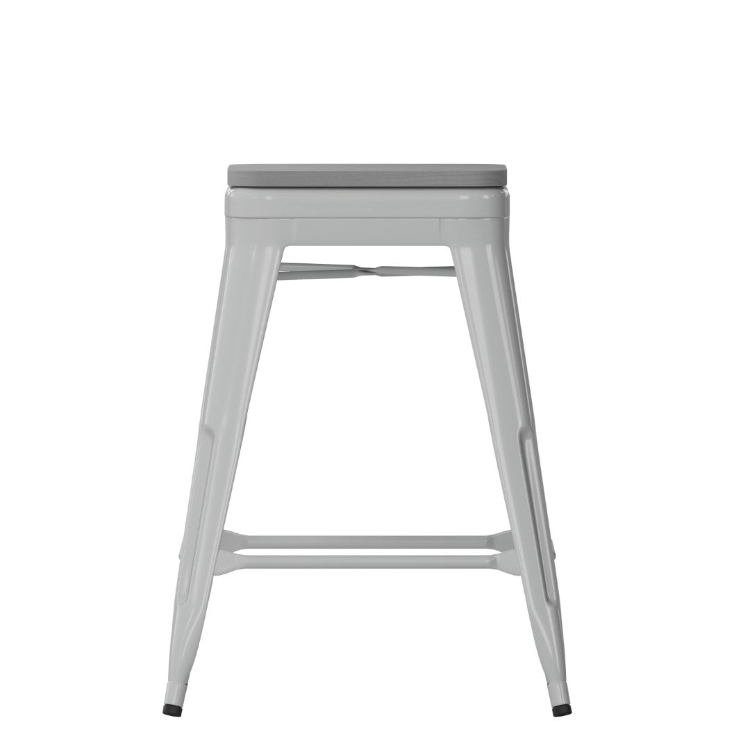 Bring practical, durable style to your café, kitchen island, or dining nook with this set of four commercial-grade counter stools. Combining a sturdy metal frame with weather-resistant poly resin seats, these backless stools deliver industrial charm, easy maintenance, and space-saving stackability—ideal for busy hospitality environments or compact home spaces.