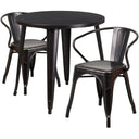 Add a touch of retro-modern style to your home, café, or patio with this commercial-grade 3-piece bistro set. Built for both indoor and outdoor use, the set combines durable galvanized steel construction with a sleek black powder coat finish for long-lasting performance and easy upkeep. Thoughtful design details — from a reinforced table top and protective floor glides to stackable chairs with finish-protecting caps — make this set ideal for restaurants, small dining areas, or casual outdoor entertaining.