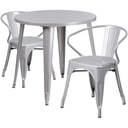 - Set includes: 1 round table and 2 arm chairs.