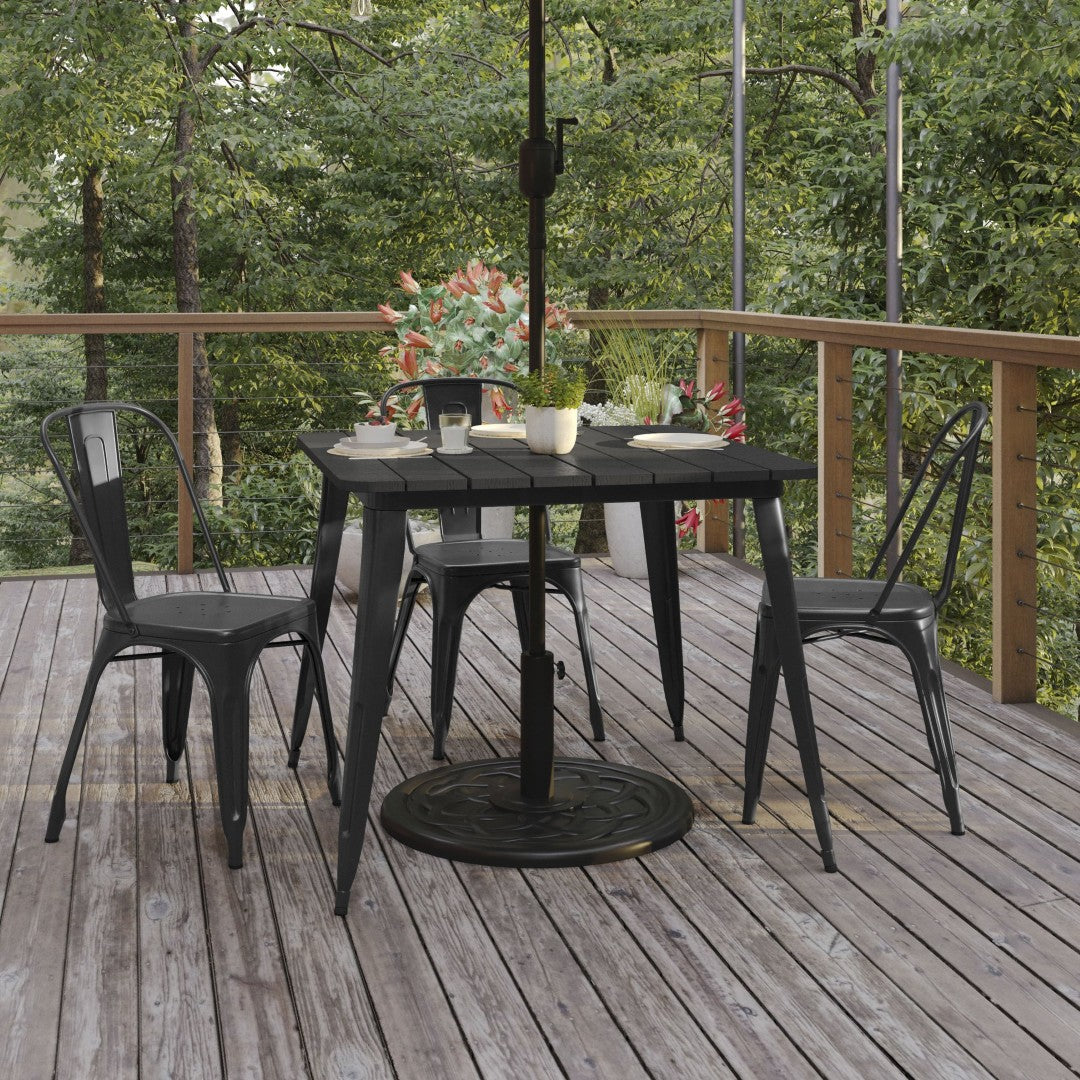 - Contemporary 36" Square Commercial Dining Table for 4 with Umbrella Hole
