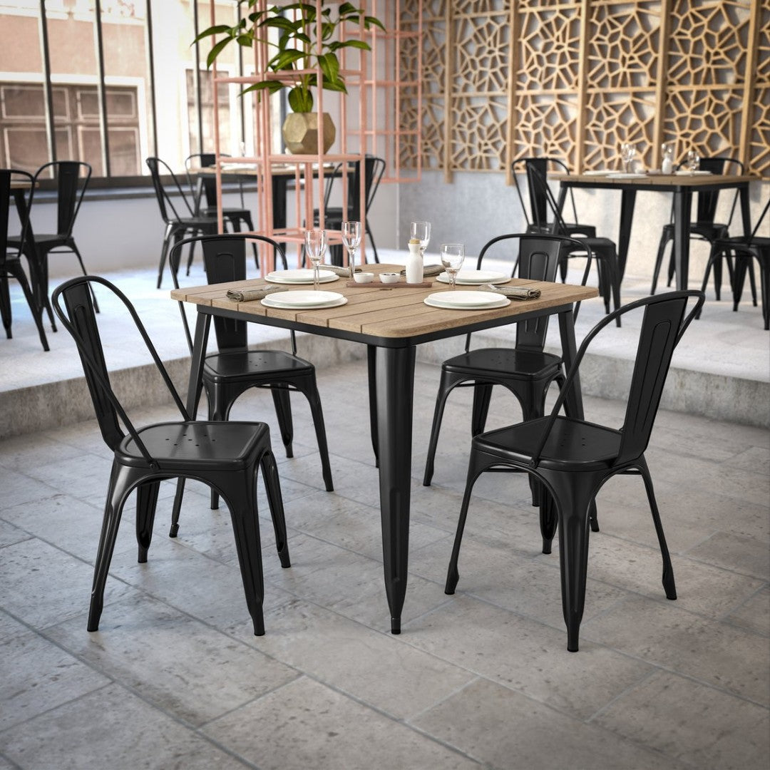 Give your outdoor or indoor dining area a sleek, commercial-quality upgrade with this versatile 36" square dining table. Built for hospitality use yet styled to suit residential patios, decks, cafes, and bistros, it combines a weather-resistant poly resin top with a sturdy steel base for reliable performance, easy maintenance, and a timeless contemporary-rustic look. Quick to assemble and simple to clean, it’s designed for high-traffic environments where durability and presentation matter.
