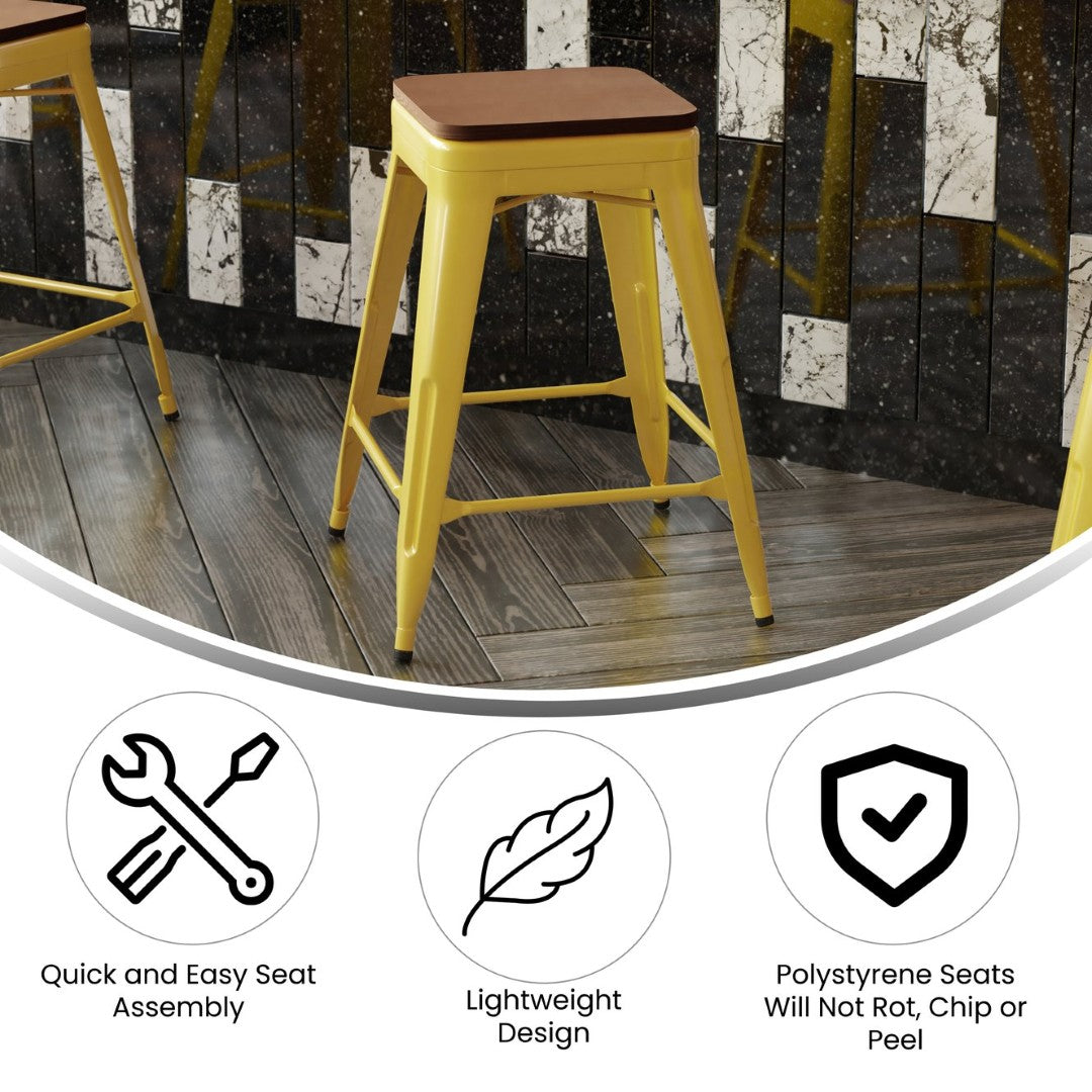- Stackable for storage: Space-saving design stacks 4–8 stools high; protective plastic caps prevent finish damage when stacked