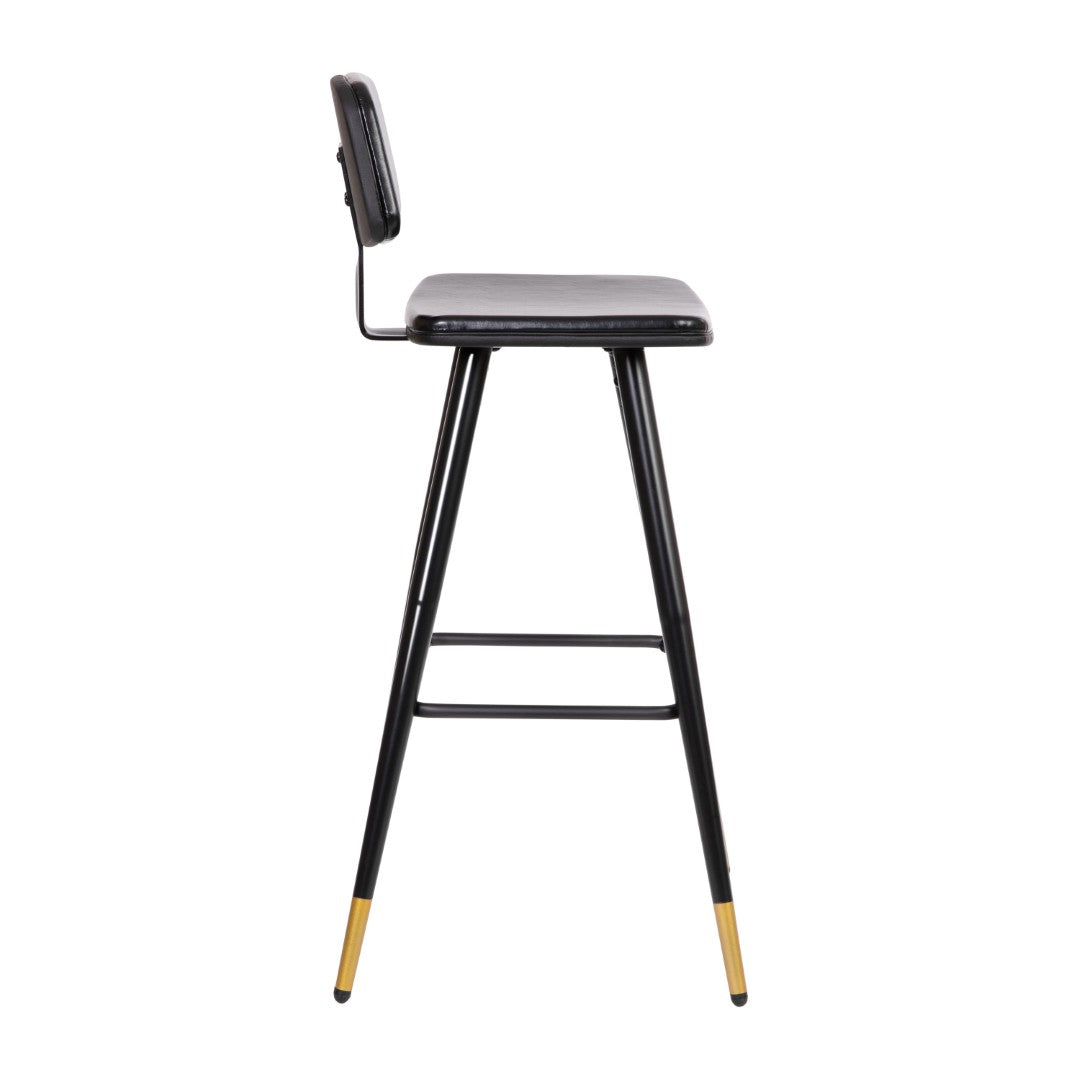 Give your bar, bistro, or kitchen island an instant upgrade with these commercial-grade low-back barstools that combine modern lines with durable construction. Soft LeatherSoft upholstery and generous padding deliver comfortable, supportive seating while the black powder-coated iron frame and gold-tipped legs provide a refined, statement-making look suited to both residential and commercial settings.