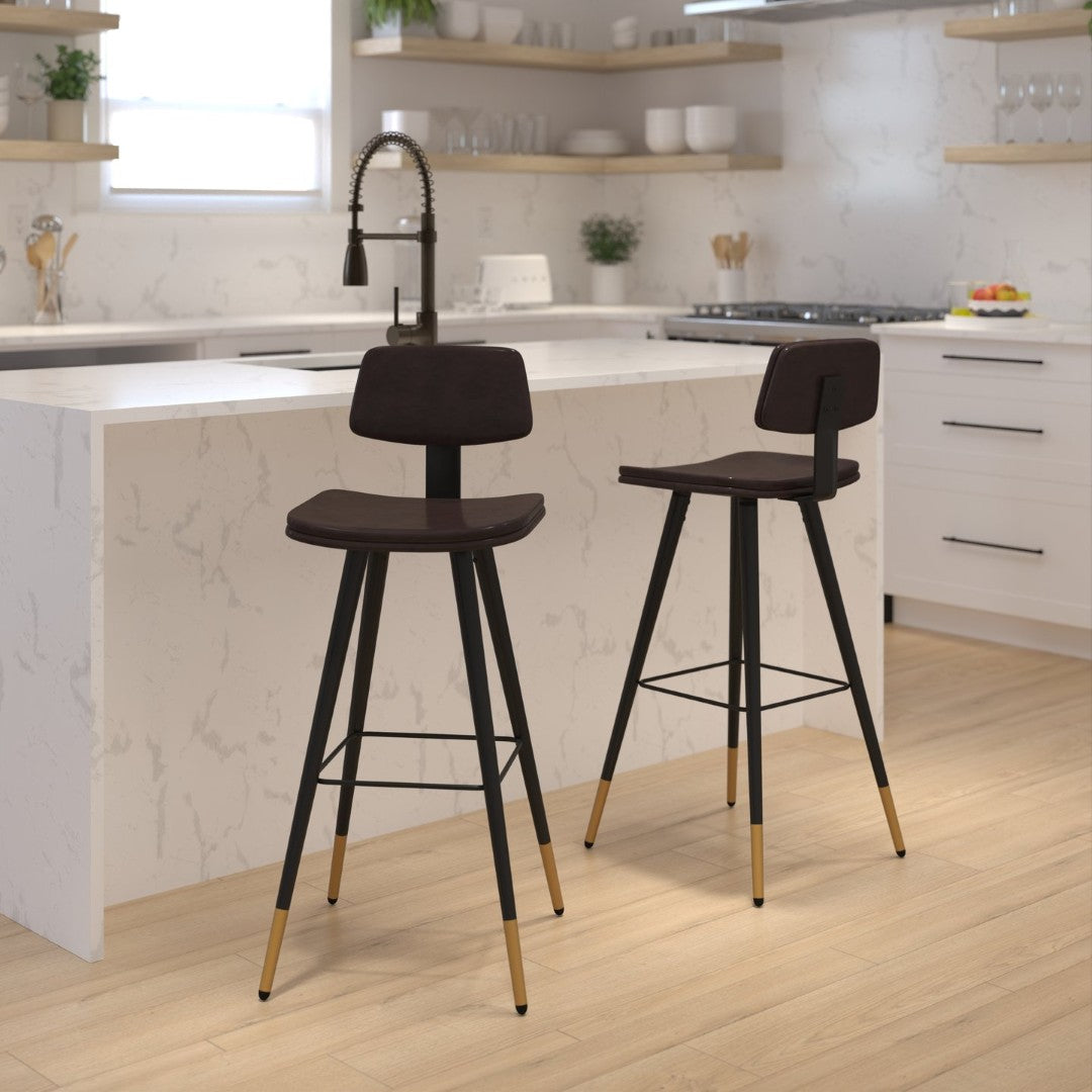 - Set of 2 Modern Mid-Back Barstools with Gold Tipped Legs - Commercial Grade