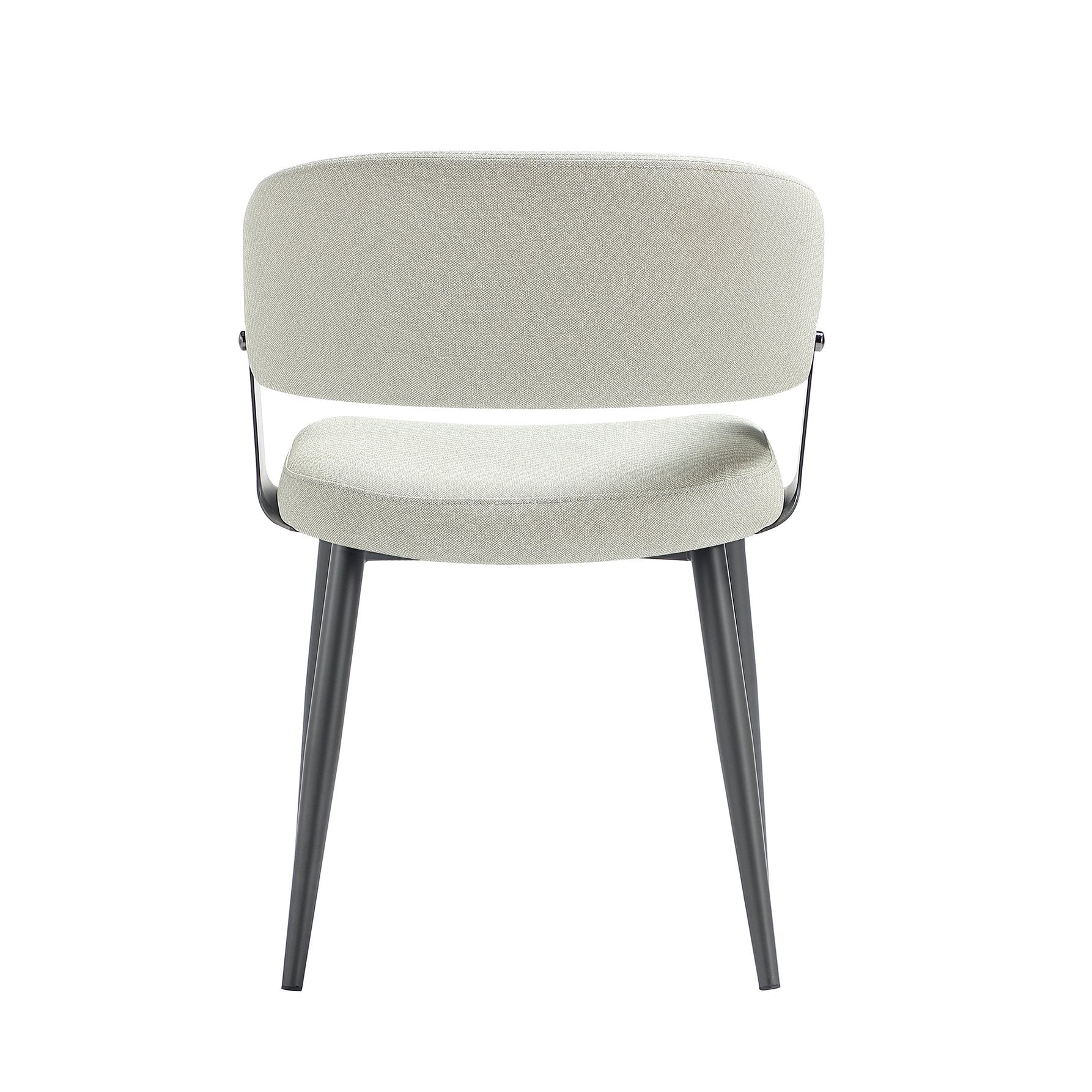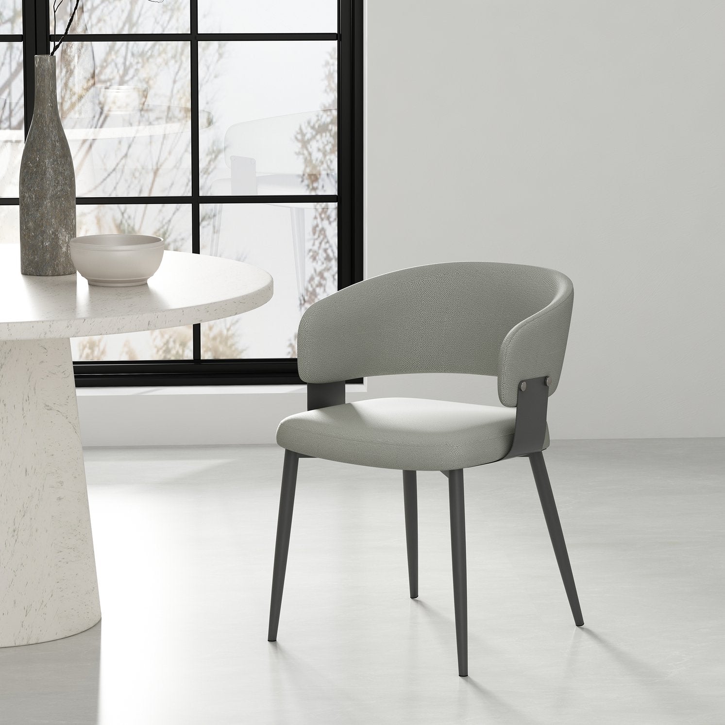 Bring modern comfort and durable style to your dining space with this textured vegan leather chair in a warm oatmeal tone. Smooth curves, a supportive wraparound back, and a plush foam seat deliver everyday comfort, while the grey metal frame offers industrial strength and a contemporary silhouette suited to both residential and commercial settings.