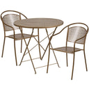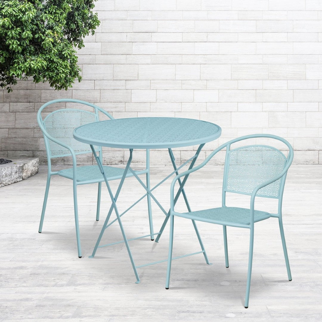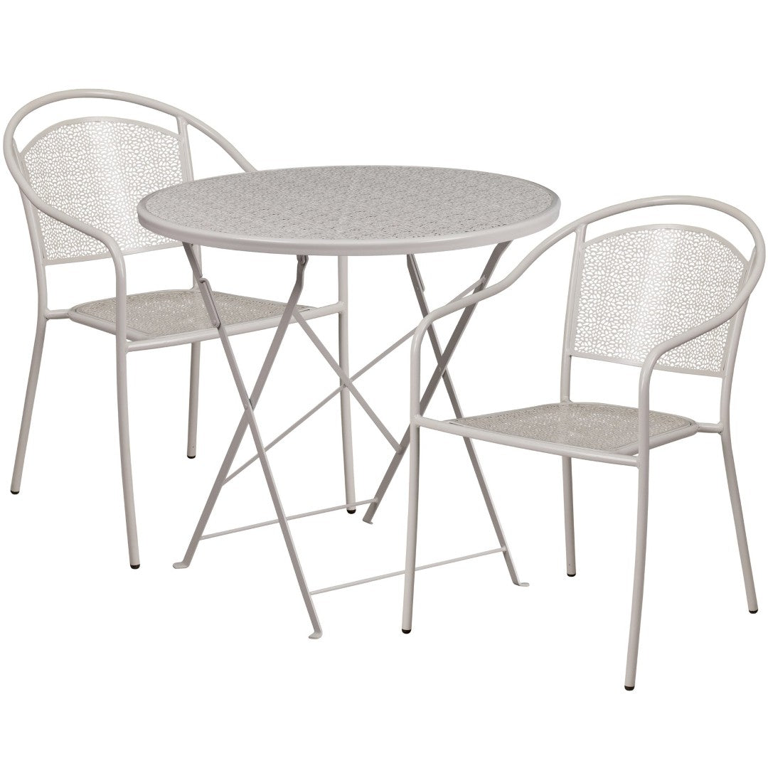 Brighten any indoor or outdoor dining area with this commercial-grade bistro set that combines durable steel construction with space-saving convenience. Ideal for cafes, restaurants, hotels, and home patios, the 30" round table and two matching round-back chairs deliver classic style, easy storage, and reliable performance for both everyday use and occasional events.