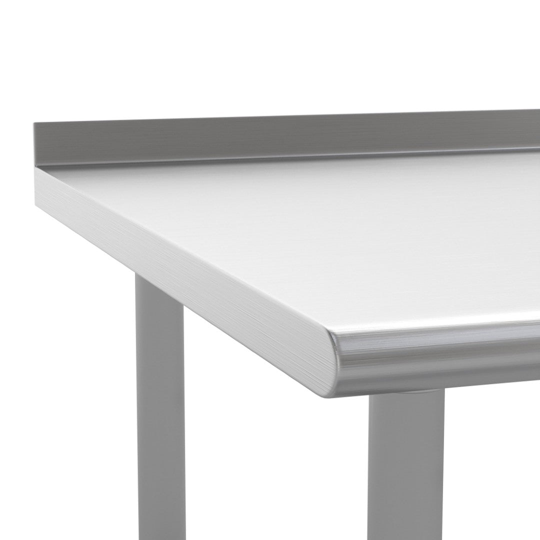 Elevate your commercial kitchen workflow with a durable, easy-to-clean stainless steel prep table engineered for heavy use. This open-base work table offers a hygienic work surface, solid load capacity, and practical features like an integrated backsplash and adjustable feet — ideal for restaurants, bakeries, delis, cafes, and other foodservice operations that demand reliability and fast maintenance.