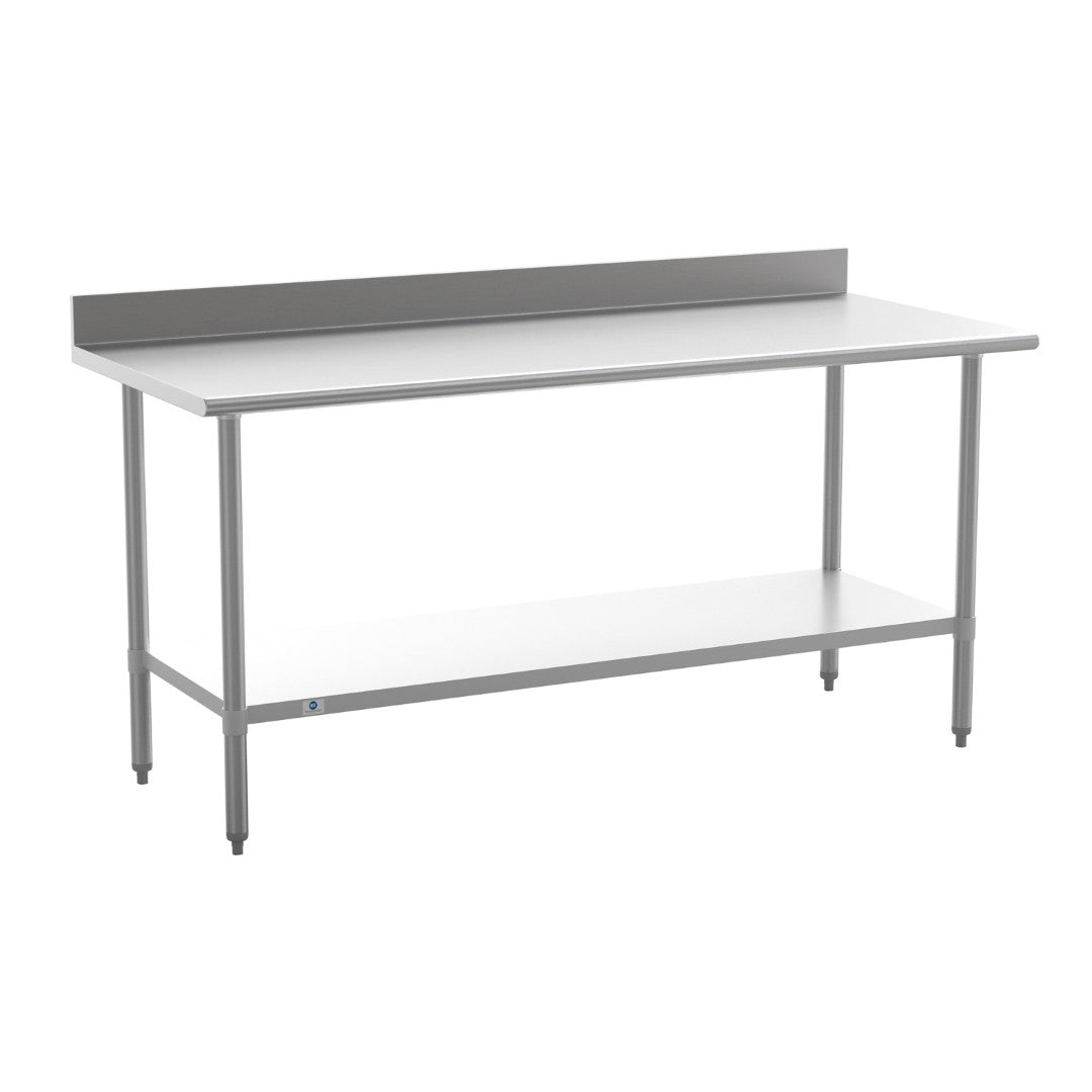 Upgrade your commercial kitchen with a durable, sanitary workspace designed for heavy use and easy maintenance. This stainless steel prep and work table combines NSF-certified construction, practical storage, and a protective backsplash to streamline food preparation and cleanup in busy restaurants, cafes, bakeries, and other foodservice environments.