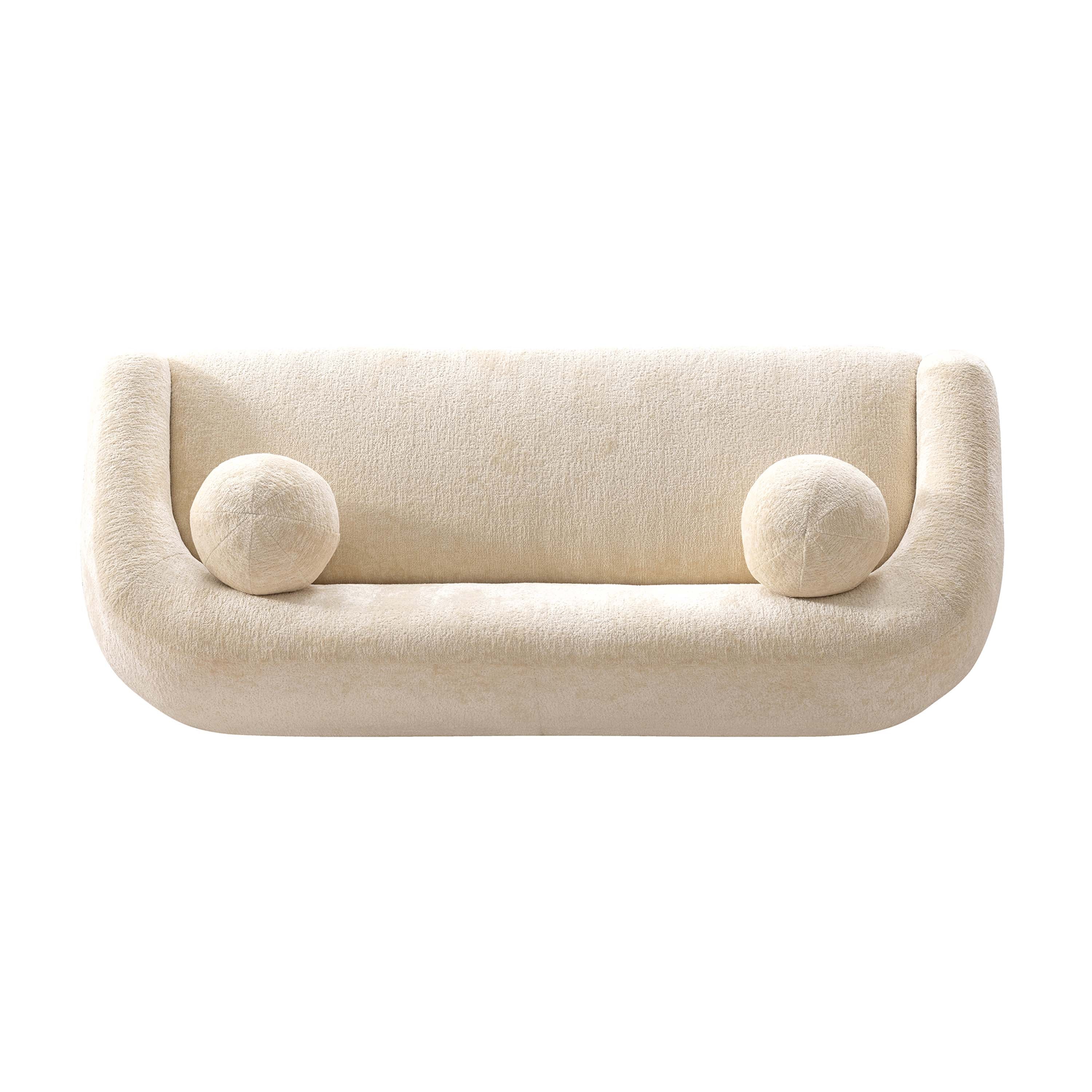 Experience refined comfort and lasting durability with this elegant cream chenille sofa—an ideal centerpiece for both modern and classic living spaces. Plush chenille upholstery and high-density foam cushions provide luxurious seating, while a solid birch frame and reinforced construction ensure commercial-grade strength. Delivered fully assembled and styled with two round accent pillows, this sofa balances premium materials with effortless setup.