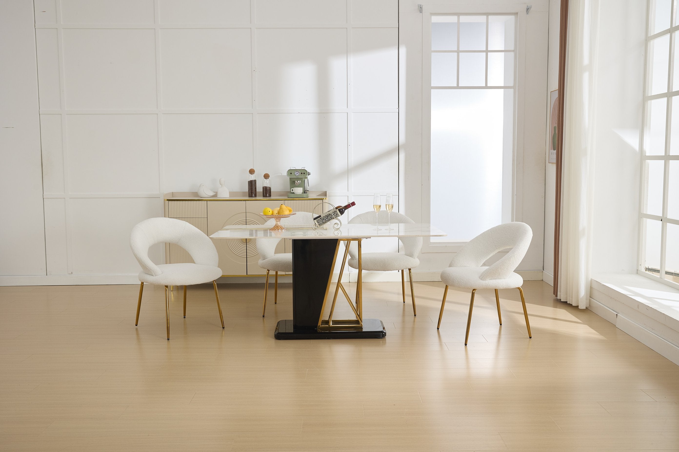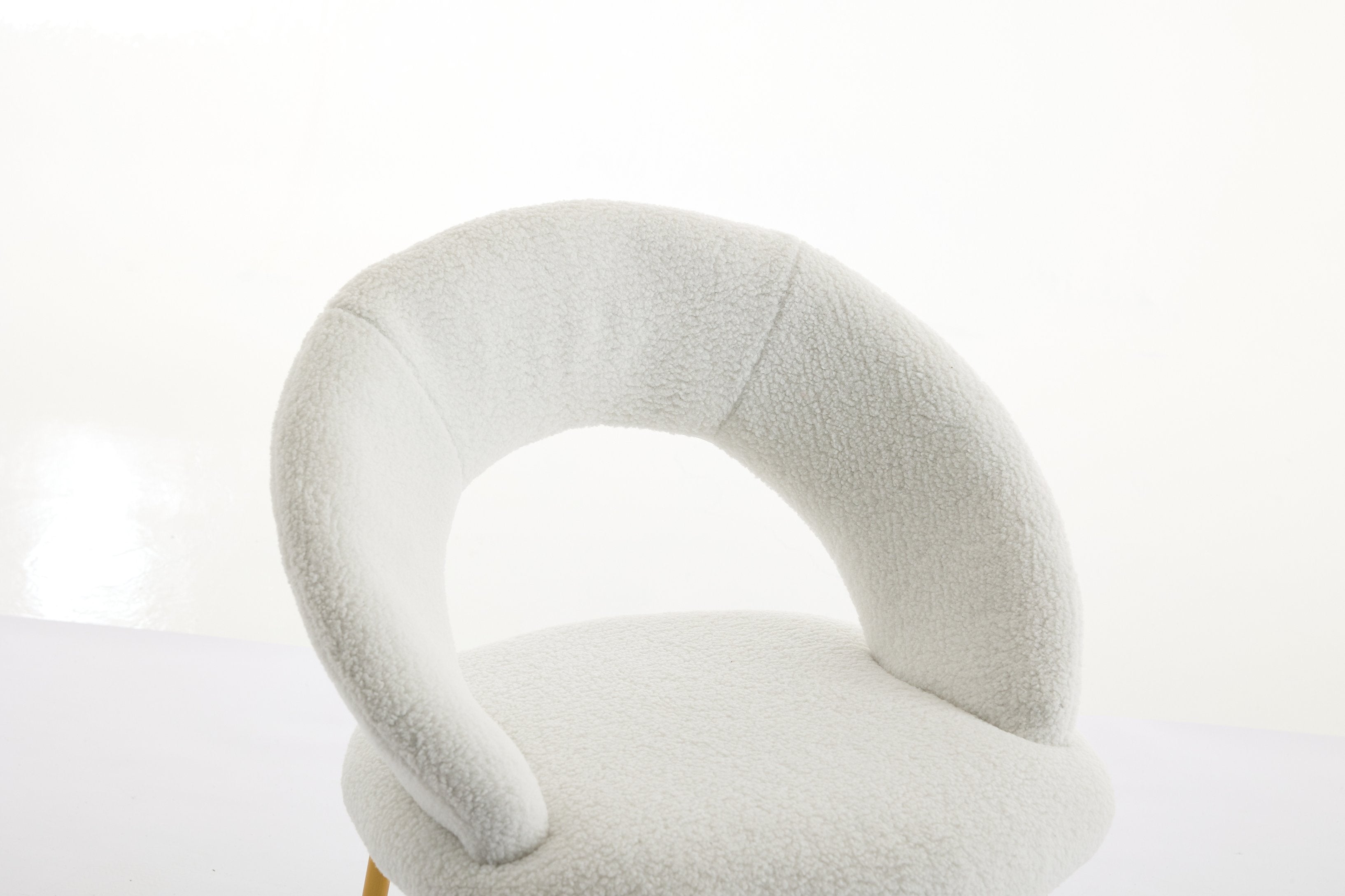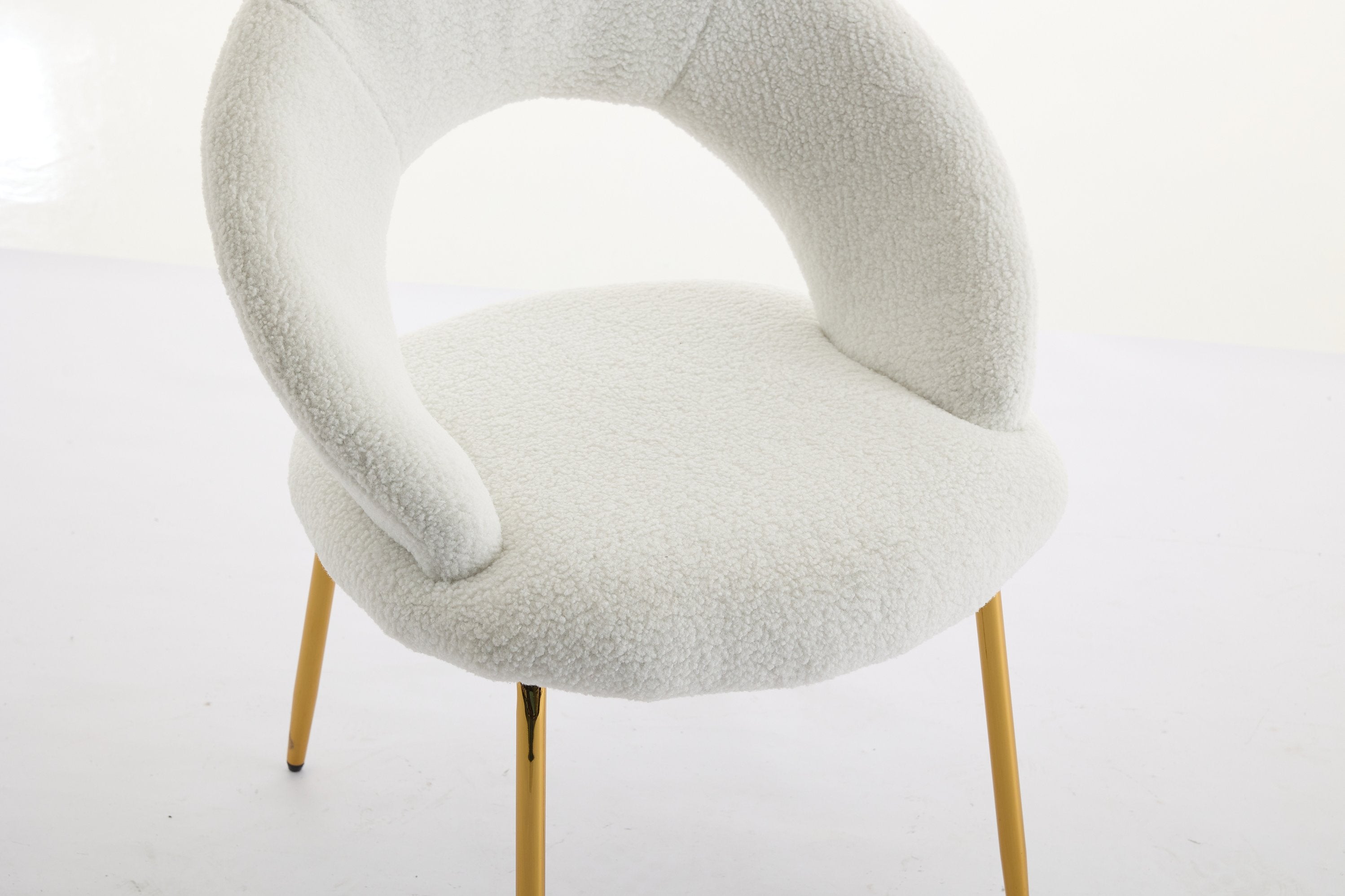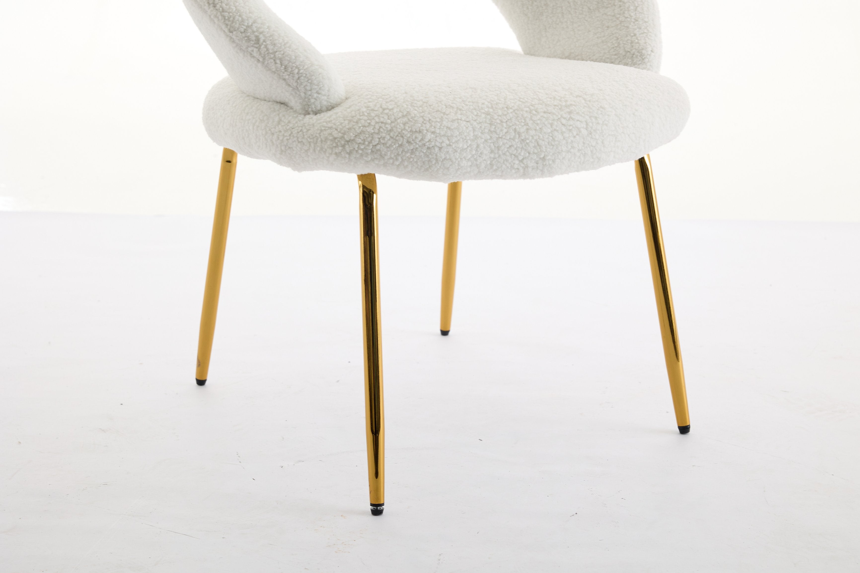 Soft, stylish, and built for everyday comfort—this teddy fabric dining chair brings a modern, cozy touch to your kitchen or dining room. Its curved, ergonomic backrest and plush foam seat offer supportive seating, while gold metal legs add a refined, contemporary accent. Designed for easy assembly and low maintenance, this chair is an ideal single-piece solution for dining areas, breakfast nooks, or accent seating in living spaces.