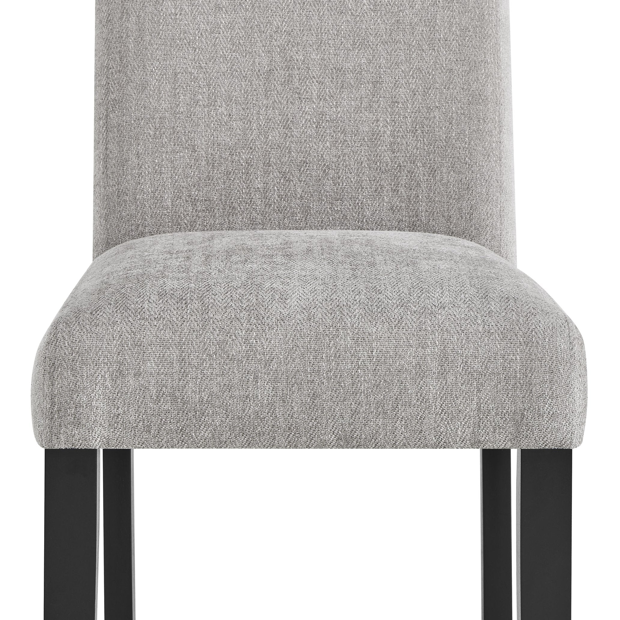 Refresh your dining area with this contemporary Parson-style chair set that blends minimalist design with everyday comfort. Each chair features a slim black frame and plush, soft-textured gray upholstery for a refined yet inviting look that works well in modern, transitional, or casual settings. Durable construction and clean lines make these chairs a versatile addition for dining rooms, kitchens, or as extra seating in living spaces.