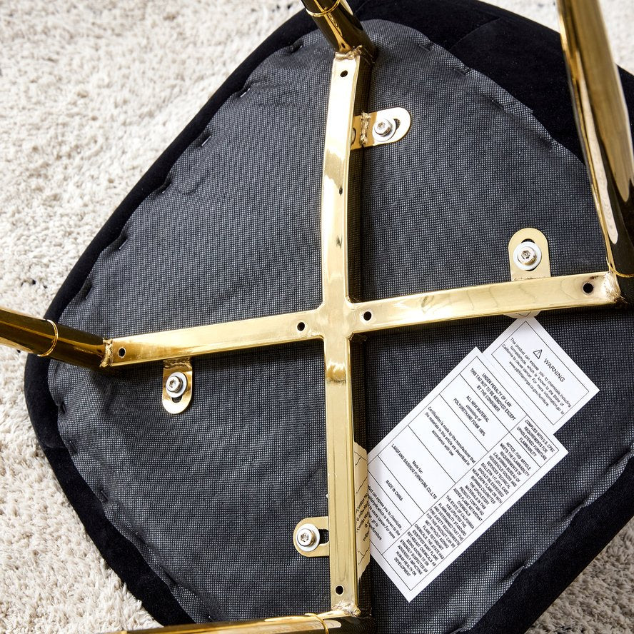 - Upholstery: Soft black velvet fabric for a luxurious look and comfortable seating