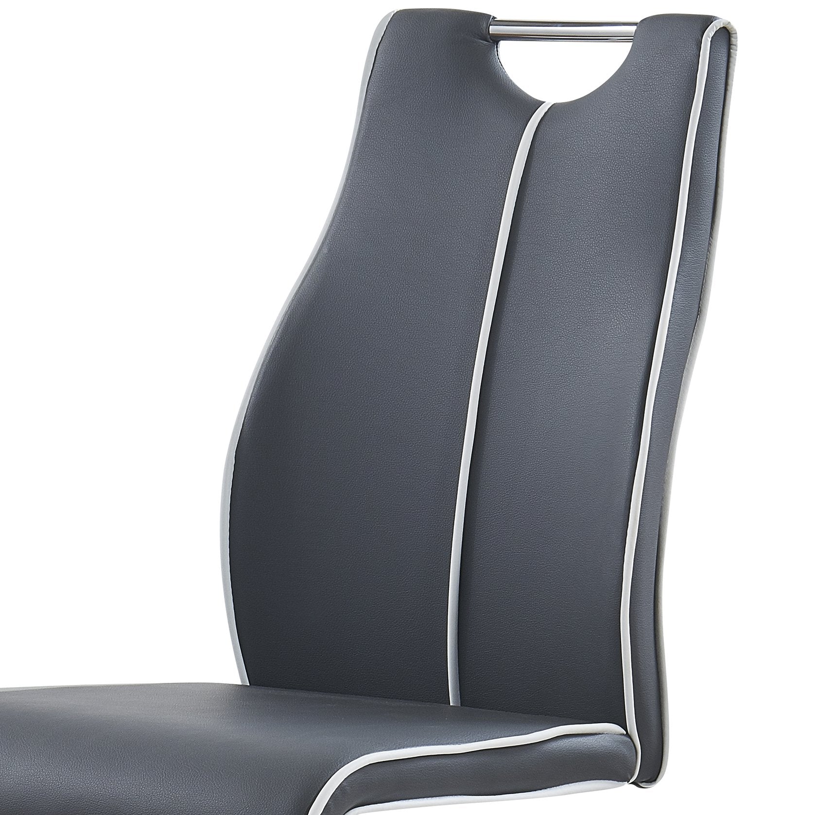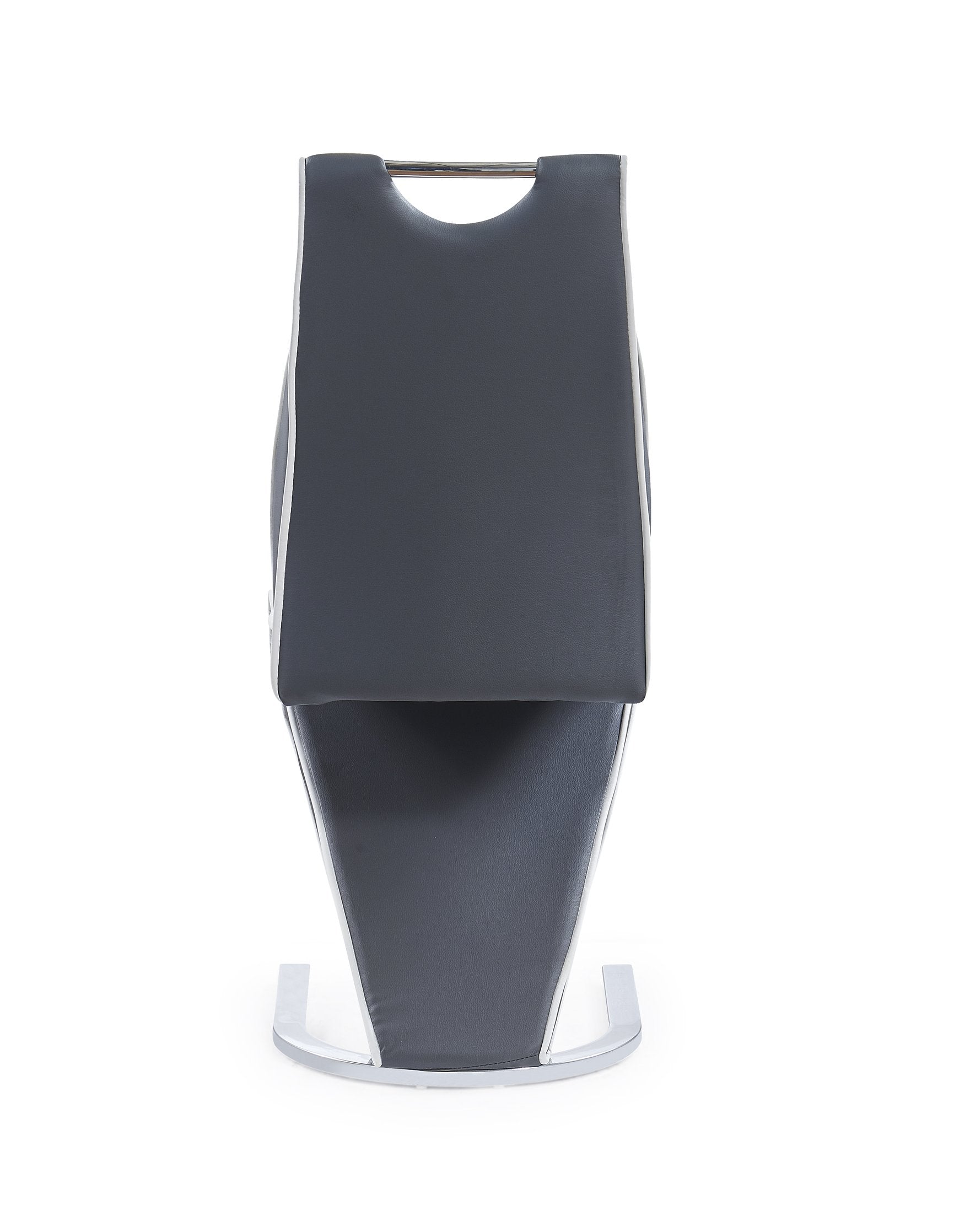 Elevate your dining space with these contemporary gray dining chairs that blend modern design with everyday comfort. Upholstered in soft gray PU with white welt detailing and supported by a stylish half-moon metal base, this kit of two chairs offers striking aesthetics and durable construction—perfect for dining rooms, kitchens, or accent seating.