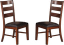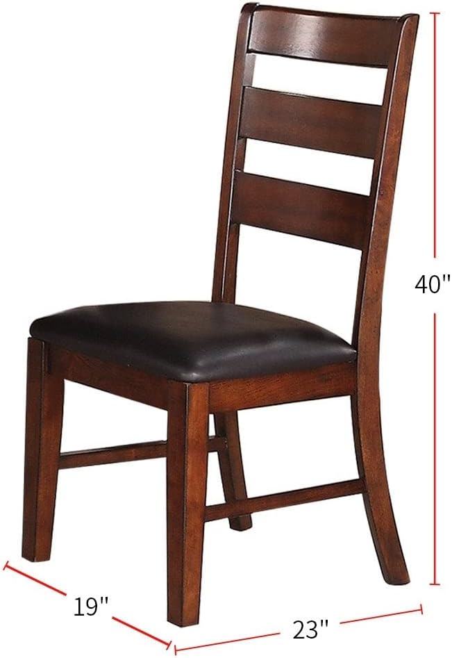 Elevate your dining space with a timeless pair of ladder-back chairs that blend classic craftsmanship and modern comfort. These antique walnut–finished chairs feature solid wood frames, a horizontal slat back for visual interest, and plush dark chocolate faux leather cushions that provide durable, easy-care seating for everyday meals or special gatherings.