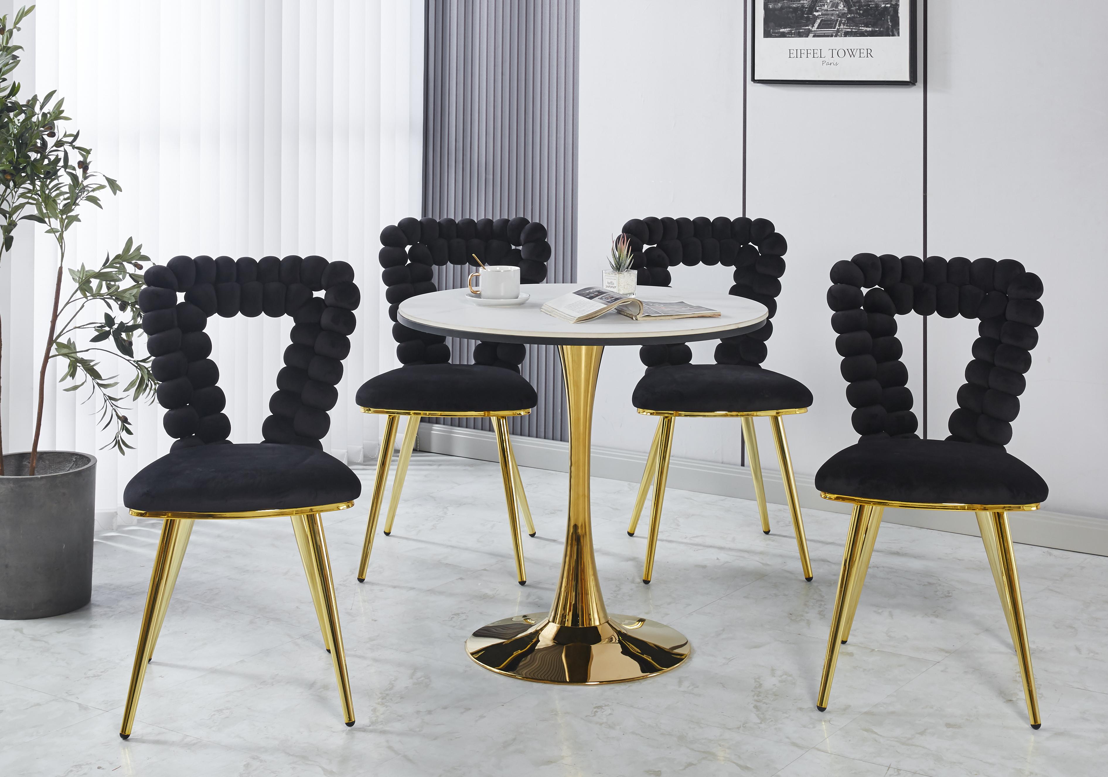 Elevate your dining or living space with this modern black and gold accent chair set. Combining sleek lines, plush upholstery, and a sturdy powder-coated iron frame, these chairs deliver contemporary style and everyday comfort—ideal for dining rooms, cafes, offices, or lounges.