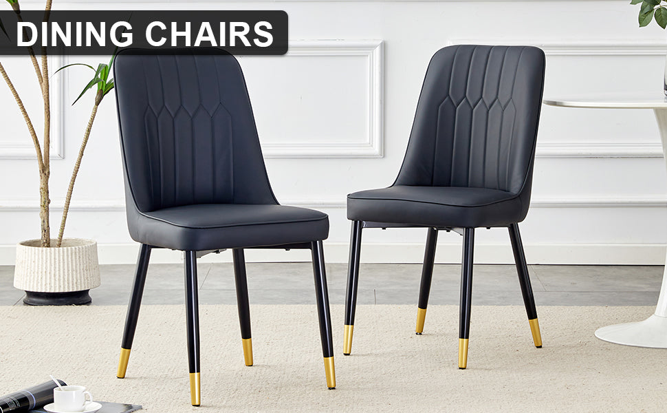 Refresh your dining and living spaces with this sleek 2-piece set of black chairs that blend modern style with everyday comfort. Upholstered in smooth PU leather and supported by sturdy metal legs, these chairs are designed for dining rooms, kitchens, and living areas where a clean, contemporary look and reliable seating are desired. Easy to assemble and maintain, they offer a practical yet stylish upgrade to your home.