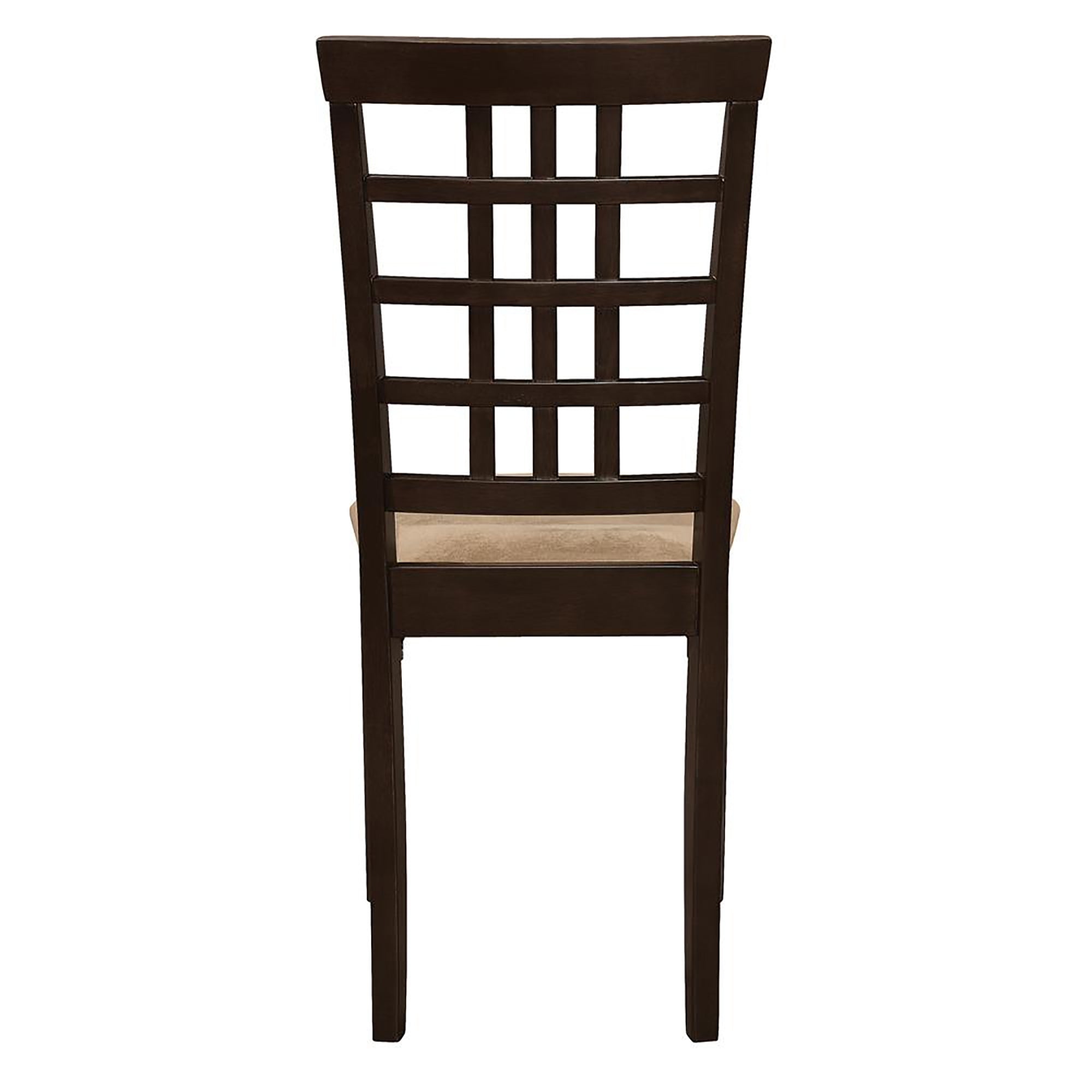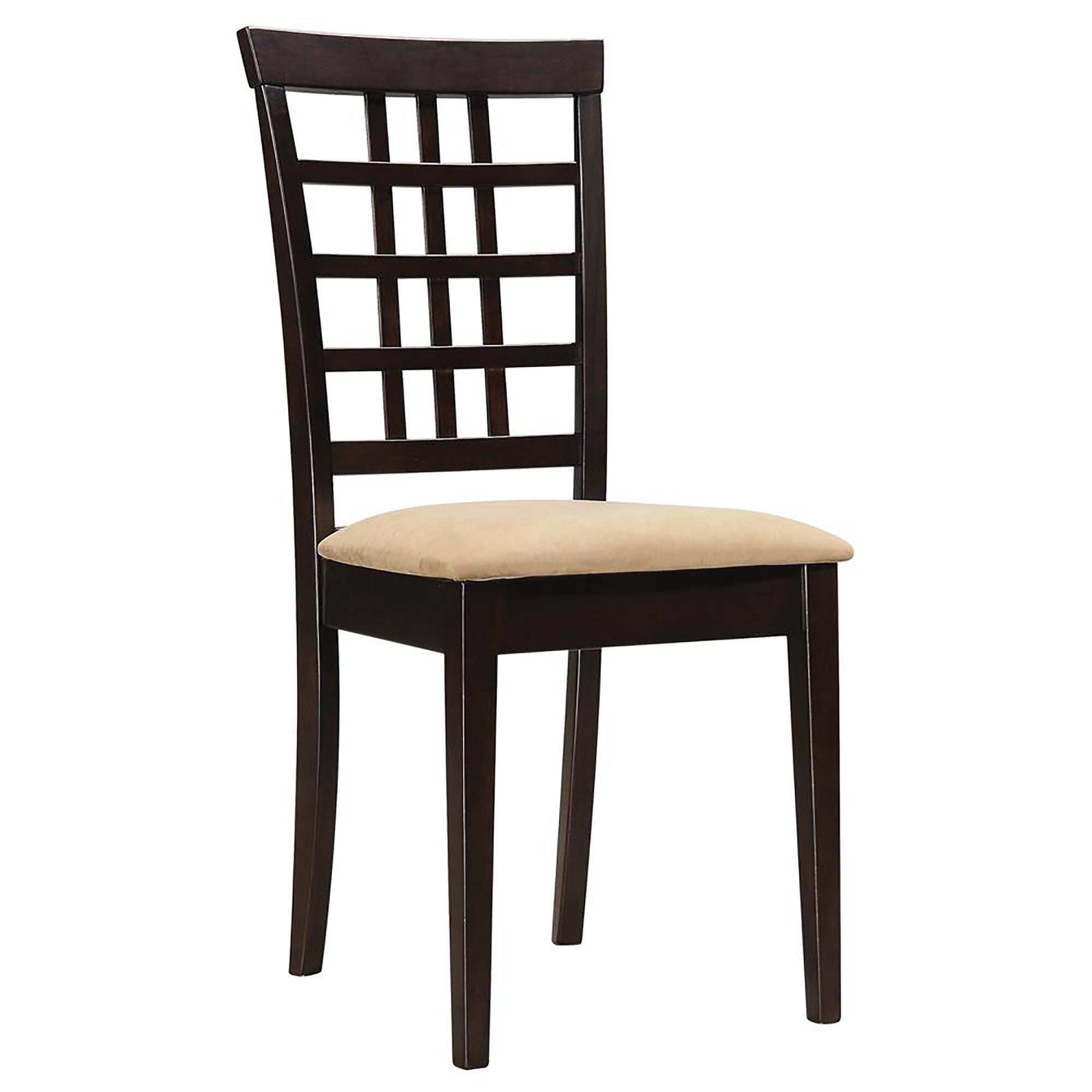 A refined pair of side chairs that blend casual comfort with tailored styling — ideal for breakfast nooks, dining rooms, or as accent seating. The cappuccino lattice back gives each chair architectural interest, while the peat/beige upholstered seat provides cushioned support and a complementary two-tone palette that fits both contemporary and transitional interiors.