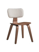 - This side chair, with its rich walnut finish, perfectly complements the dining table’s natural and elegant design.