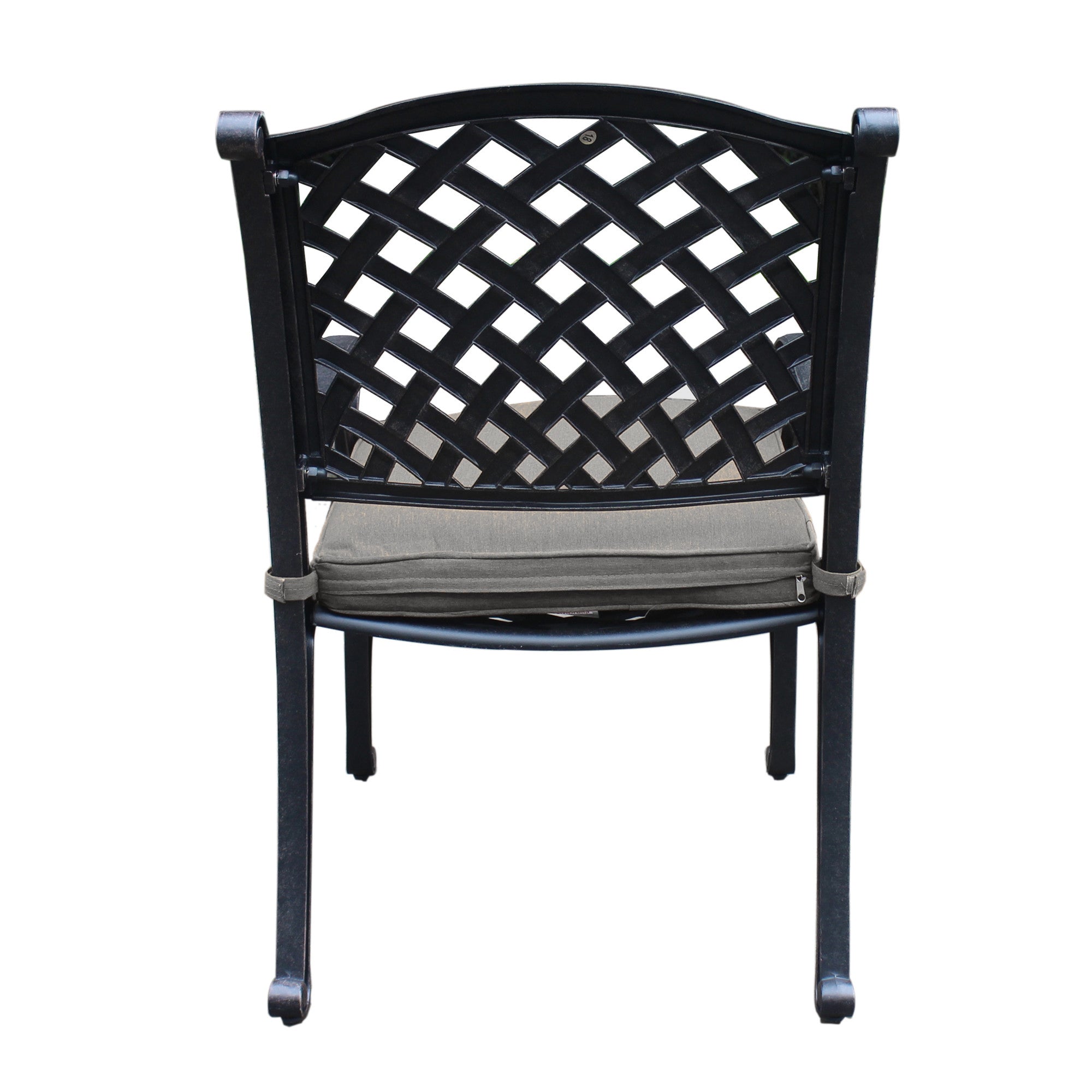 Enjoy relaxed outdoor dining with this elegant cast aluminum arm chair—designed to combine classic style, lasting durability, and all-day comfort for patios, gardens, and indoor dining spaces. The oversized seat, weather-ready cushion, and refined lattice back deliver a timeless look while providing practical performance season after season.