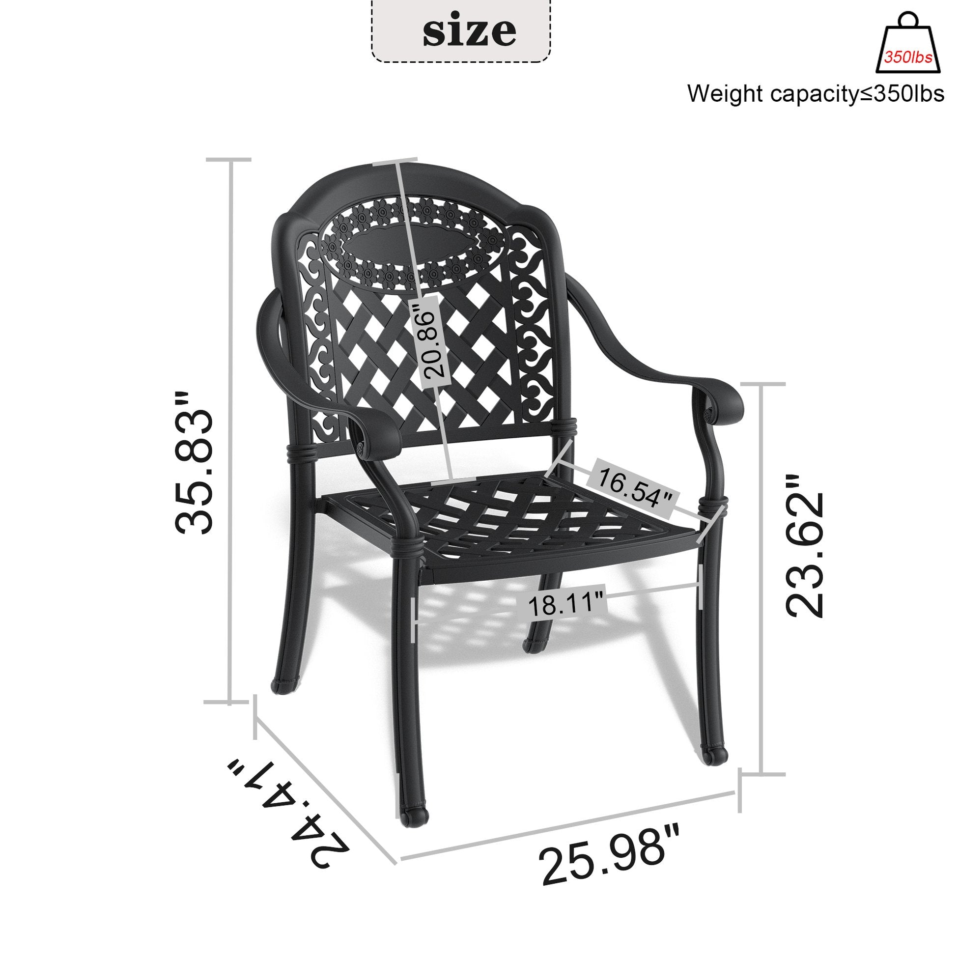 - Weight Capacity: Supports up to 350 lbs per chair