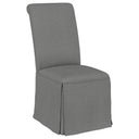 Elevate your dining area with the Catrina khaki upholstered skirted dining chairs — a set of two that blends traditional charm with contemporary comfort. Each chair is thoughtfully designed with a tall, rolled-back silhouette and plush cushioning to provide supportive seating for long dinners or everyday meals. The tailored skirted base and neutral khaki fabric create a refined, cohesive look that pairs beautifully with a variety of table styles and dining room decors.