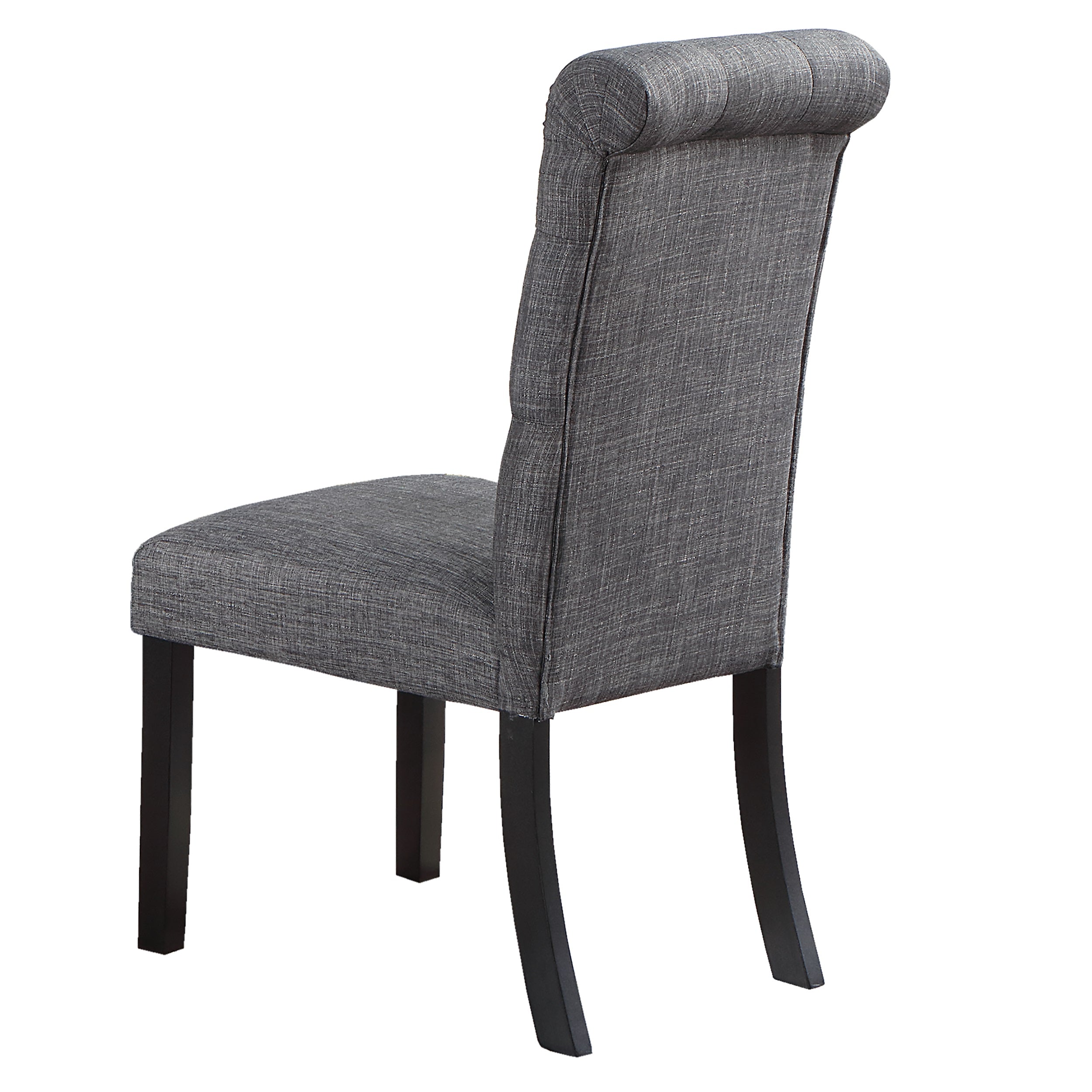 Enjoy elevated comfort and contemporary style with this set of 2 charcoal fabric dining chairs—designed to blend plush seating, refined tufted details, and a distinctive rolled-back top for a sophisticated dining experience. Ideal for everyday meals or special occasions, these side chairs offer supportive padding and a durable frame that complements modern and transitional interiors alike.