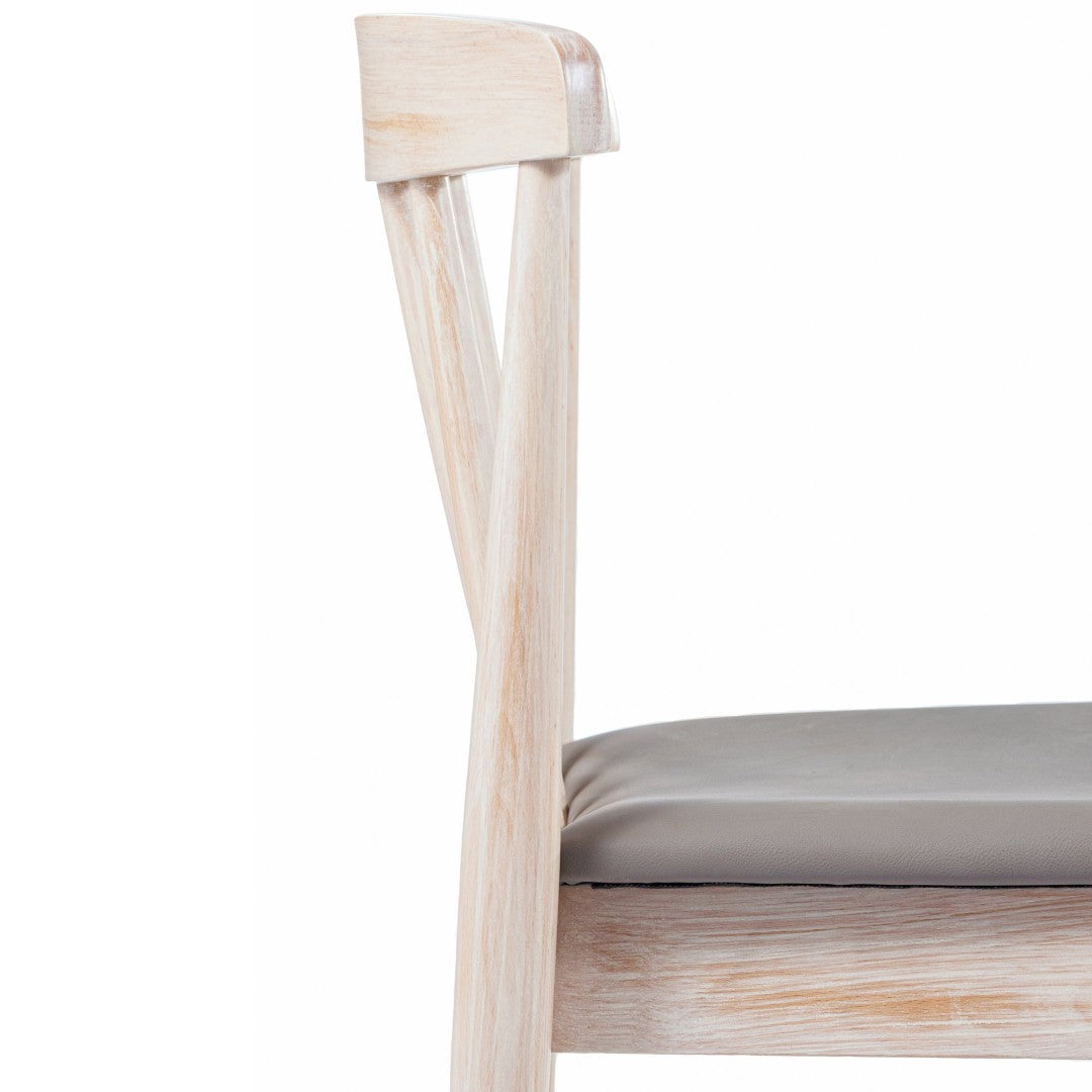 - Finish: Antique white wood frame with brown/beige vinyl seat—suits a range of decors